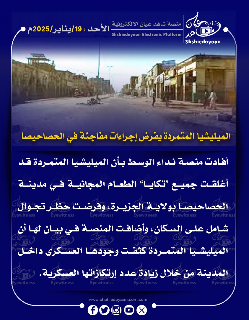 خبر في صورة الأخبار الميليشيا المتمردة يفرض إجراءات مفاجئة في الحصاحيصا شاهد عيان يناير 19, 2025 0 أقرأ المزيد ..