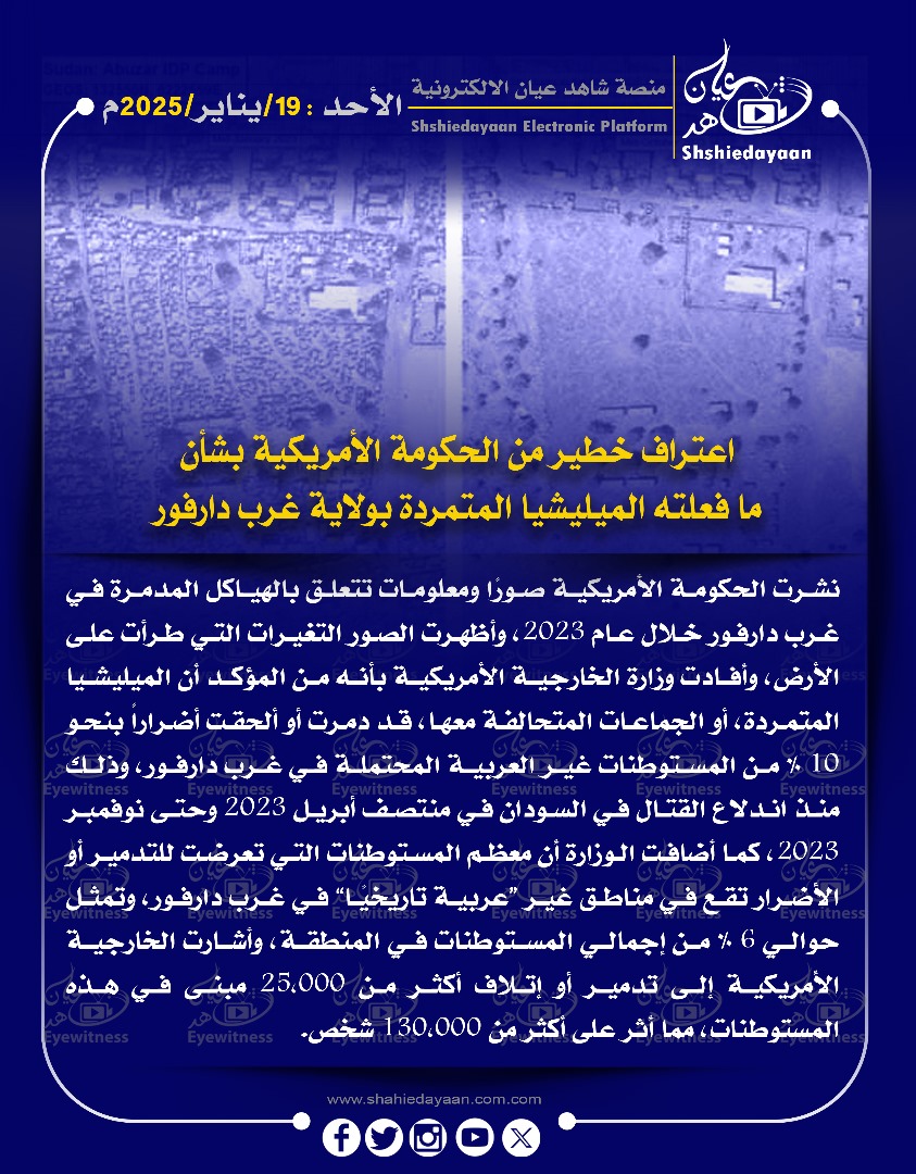 خبر في صورة الأخبار اعتراف خطير من الحكومة الأمريكية بشأن ما فعلته الميليشيا المتمردة بولاية غرب دارفور شاهد عيان يناير 19, 2025 0 أقرأ المزيد ..