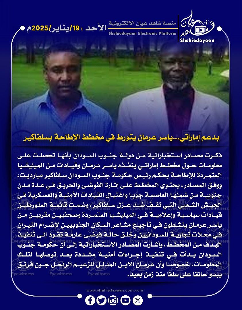 خبر في صورة الأخبار بدعم إماراتي… ياسر عرمان يتورط في مخطط الإطاحة بسلفاكير شاهد عيان يناير 19, 2025 0 أقرأ المزيد ..