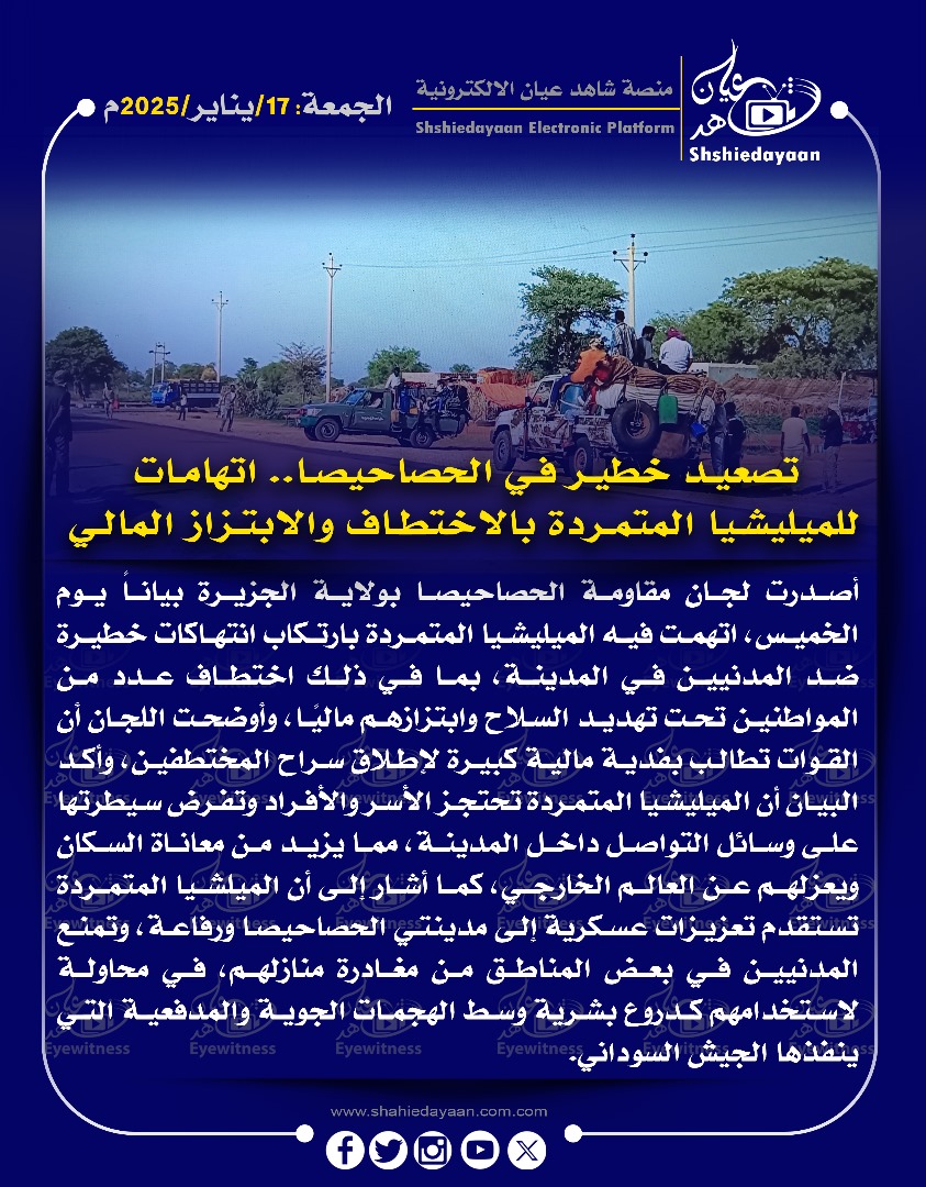 خبر في صورة الأخبار تصعيد خطير في الحصاحيصا .. اتهامات للميليشيا المتمردة بالاختطاف والابتزاز المالي شاهد عيان يناير 17, 2025 0 أقرأ المزيد ..