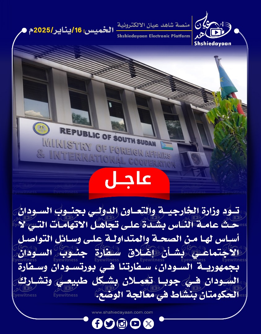 خبر في صورة الأخبار تود وزارة الخارجية والتعاون الدولي بجنوب السودان حث عامة الناس بشدة على تجاهل الاتهامات التي لا أساس لها شاهد عيان يناير 16, 2025 0 أقرأ المزيد ..