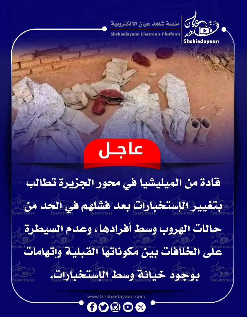 خبر في صورة عاجل……قادة من الميليشيا في محور الجزيرة تطالب بتغيير الإستخبارات شاهد عيان يناير 15, 2025 0 أقرأ المزيد ..