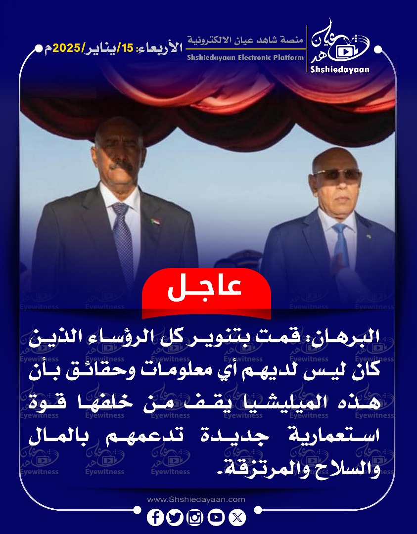 الأخبار نجاحات كبيرة حققتها الجهات الأمنية السودانية ذات الصلة بجمع المعلومات في بعض دول الجوار الداعمة للمليشيا شاهد عيان أبريل 25, 2026