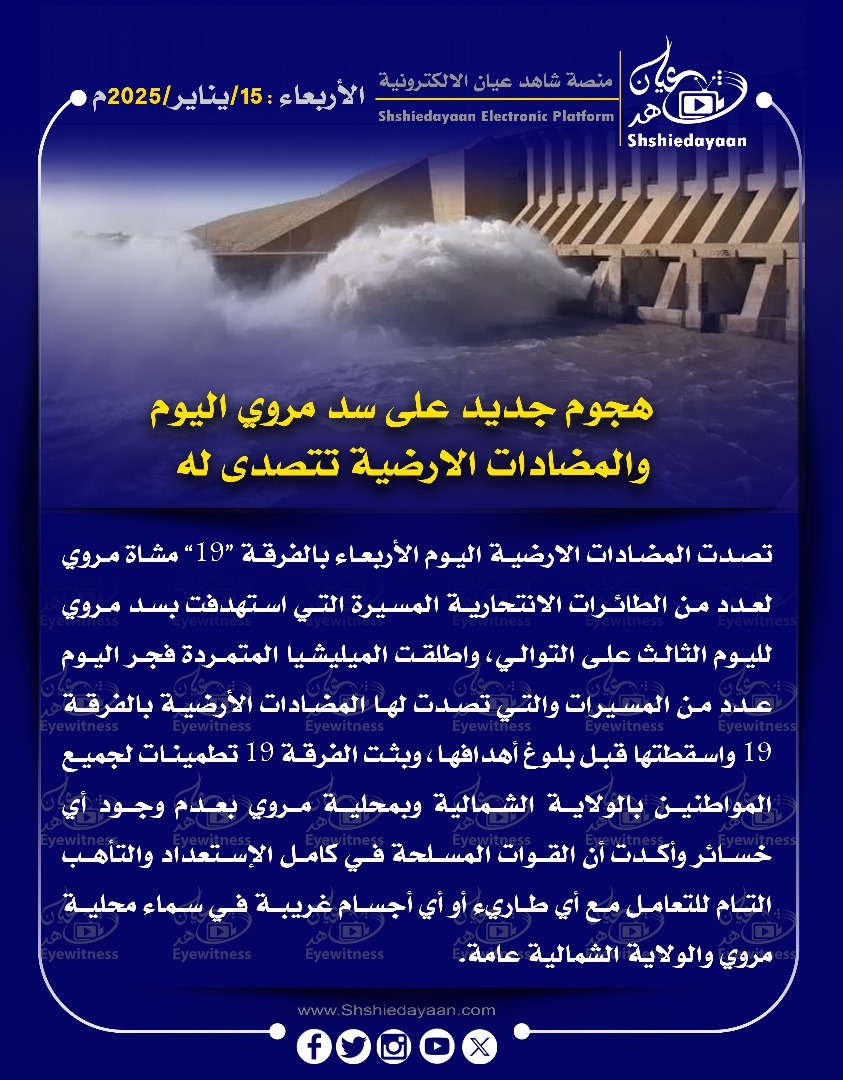 خبر في صورة الأخبار هجوم جديد على سد مروي اليوم والمضادات الارضية تتصدى له شاهد عيان يناير 15, 2025 0 أقرأ المزيد ..