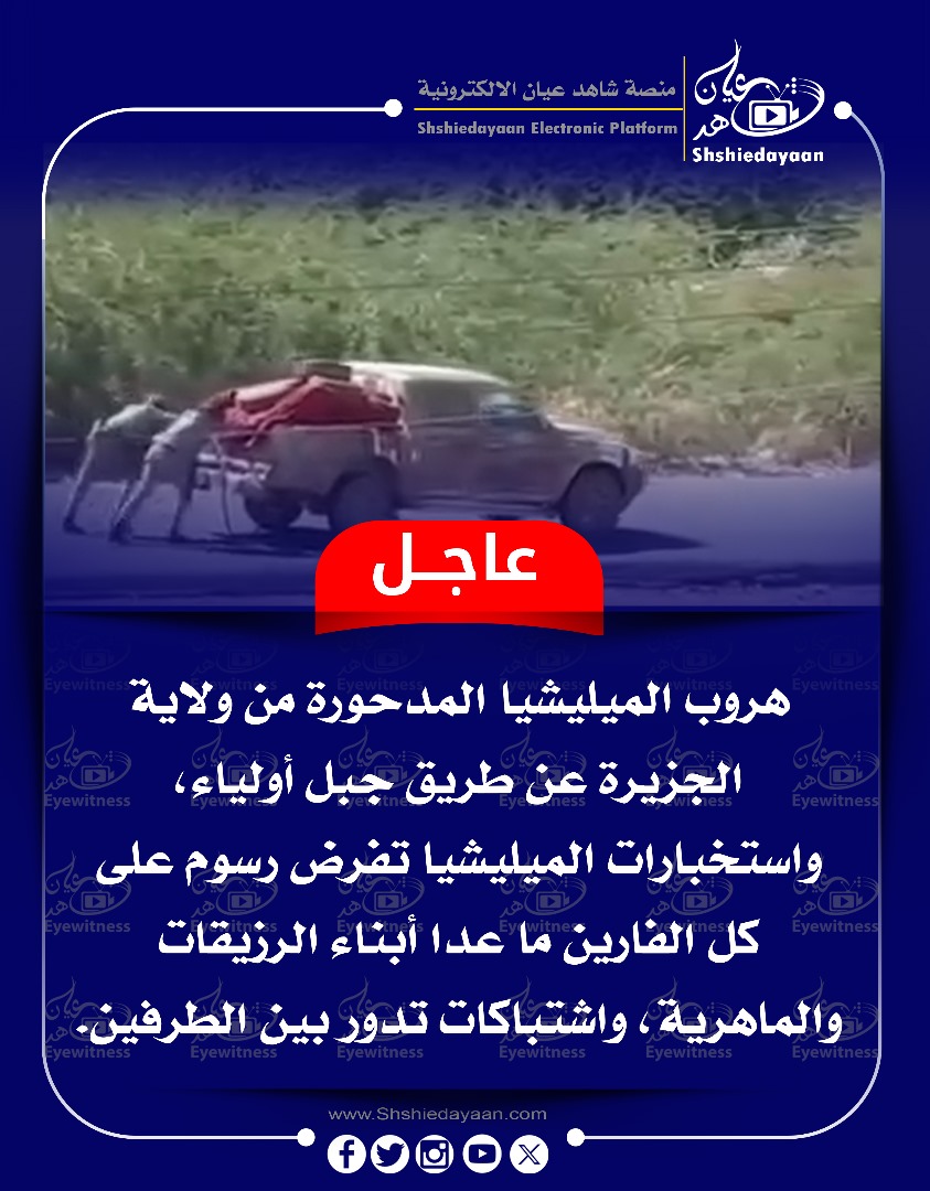 خبر في صورة عاجل … هروب الميليشيا المدحورة من ولاية الجزيرة عن طريق جبل أولياء شاهد عيان يناير 14, 2025 0 أقرأ المزيد ..