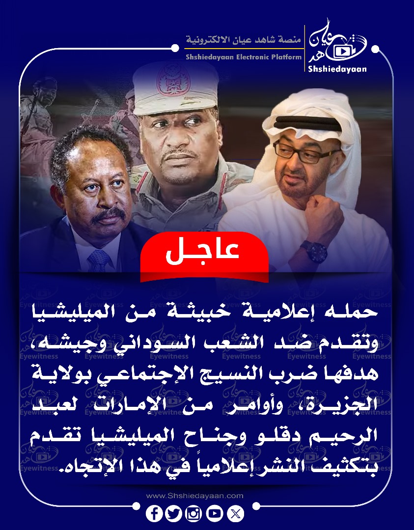 خبر في صورة عاجل … حمله إعلامية خبيثة من الميليشيا وتقدم ضد الشعب السوداني وجيشه شاهد عيان يناير 14, 2025 0 أقرأ المزيد ..