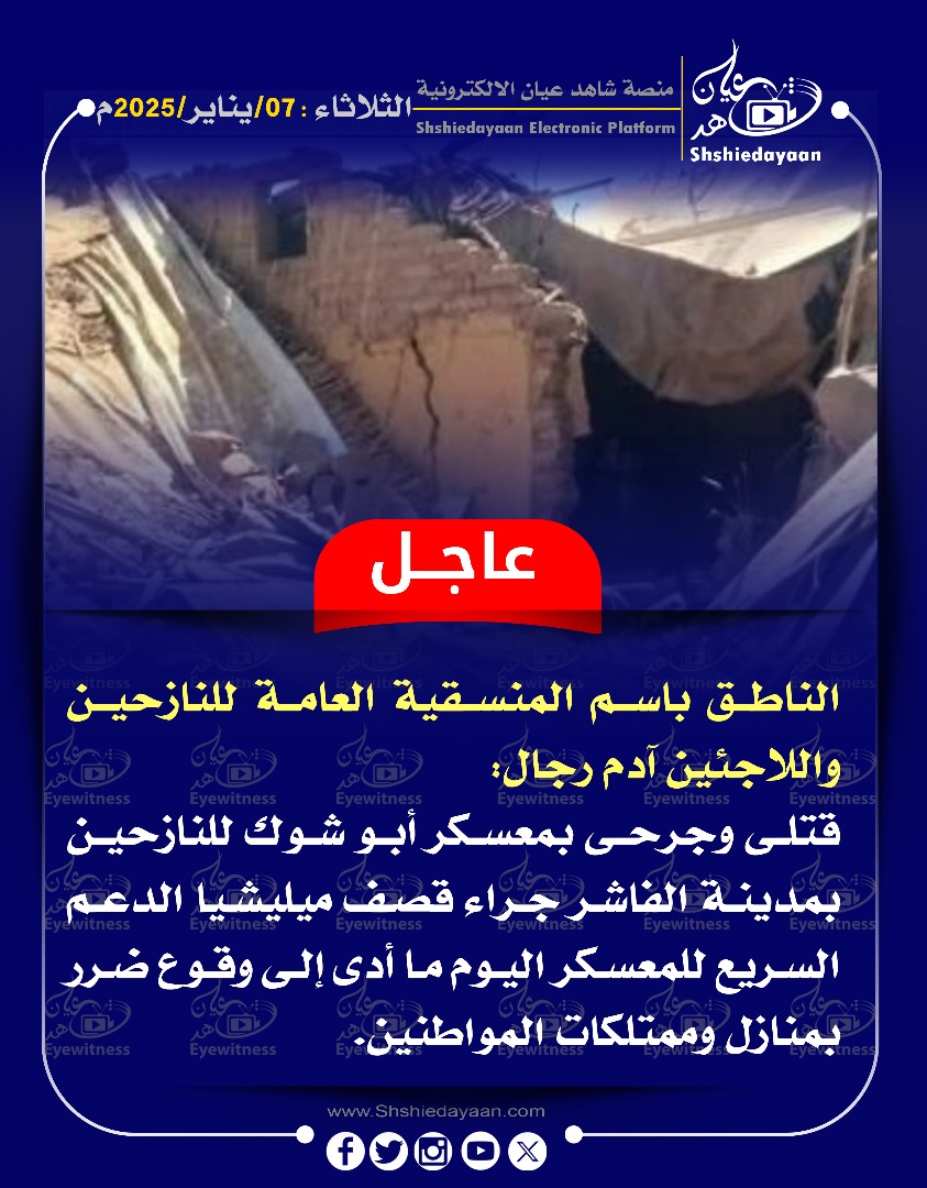 خبر في صورة الأخبار عاجل .. الناطق باسـم المنسقية العامة للنازحيـن واللاجئين آدم رجال شاهد عيان يناير 7, 2025 0 أقرأ المزيد ..