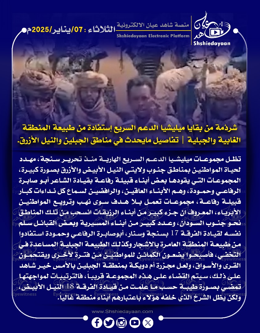 الأخبار الإدارات الأهلية في كردفان تدعو الأهالي إلى الابتعاد عن مواقع المليشيا خشية النهب والانتهاكات شاهد عيان أبريل 24, 2026