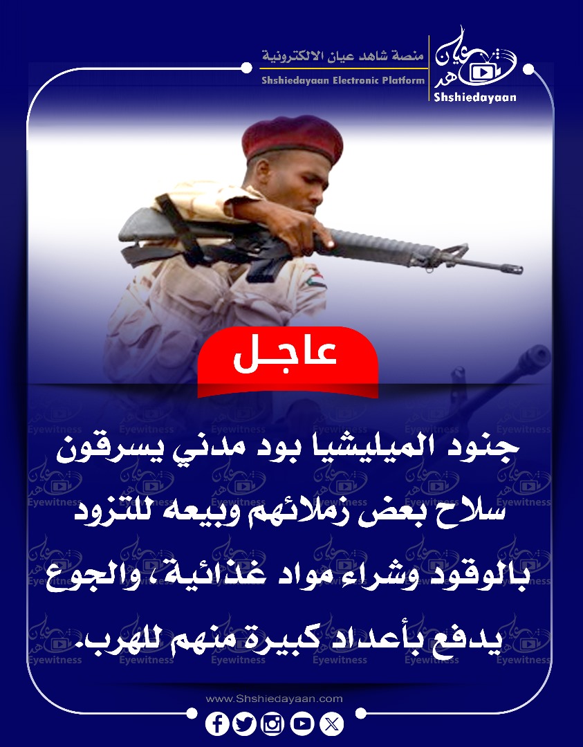 خبر في صورة الأخبار جنود الميليشيا بود مدني يسرقون سلاح بعض زملائهم وبيعه للتزود بالوقود شاهد عيان يناير 7, 2025 0 أقرأ المزيد ..