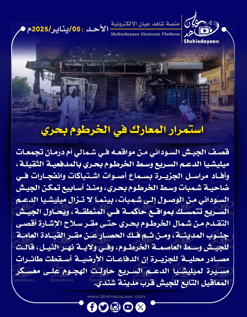 خبر في صورة عاجل……. من أحد المصادر داخل ميليشيا الدعم السريع، شاهد عيان يناير 5, 2025 0 أقرأ المزيد ..
