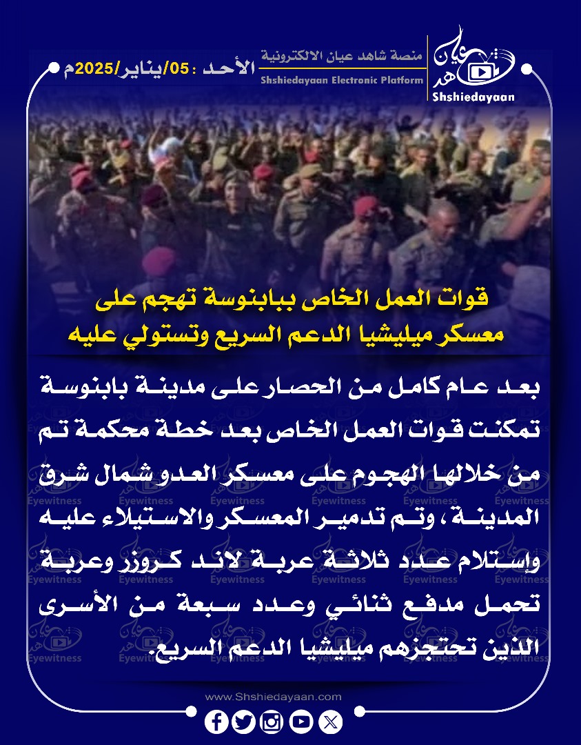 خبر في صورة قوات العمل الخاص ببابنوسة تهجم على معسكر ميليشيا الدعم السريع وتستولي عليه شاهد عيان يناير 5, 2025 0 أقرأ المزيد ..