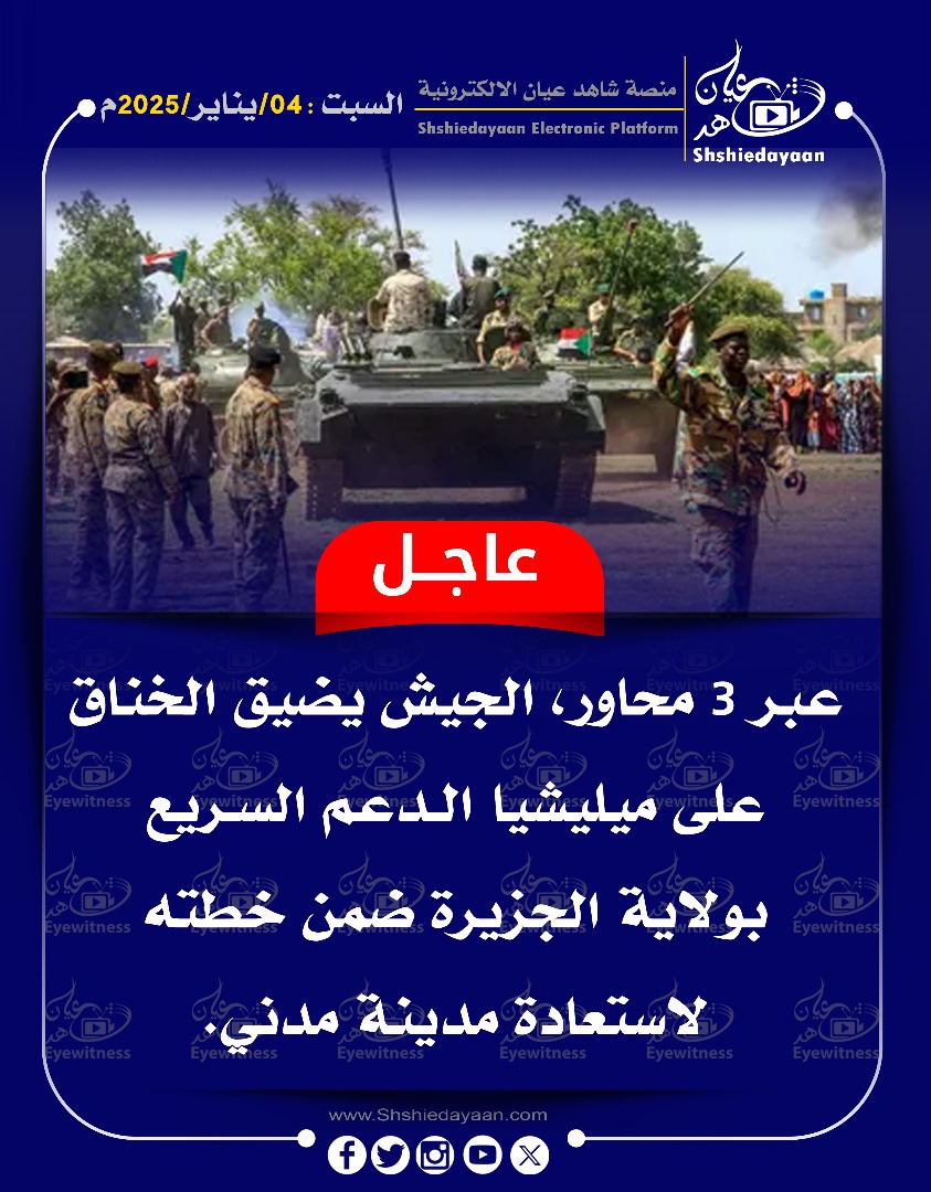 خبر في صورة عاجل …. عبر 3 محاور الجيش يضيق الخناق على ميليشيا الدعم السريع هد بولاية الجزيرة شاهد عيان يناير 4, 2025 0 أقرأ المزيد ..