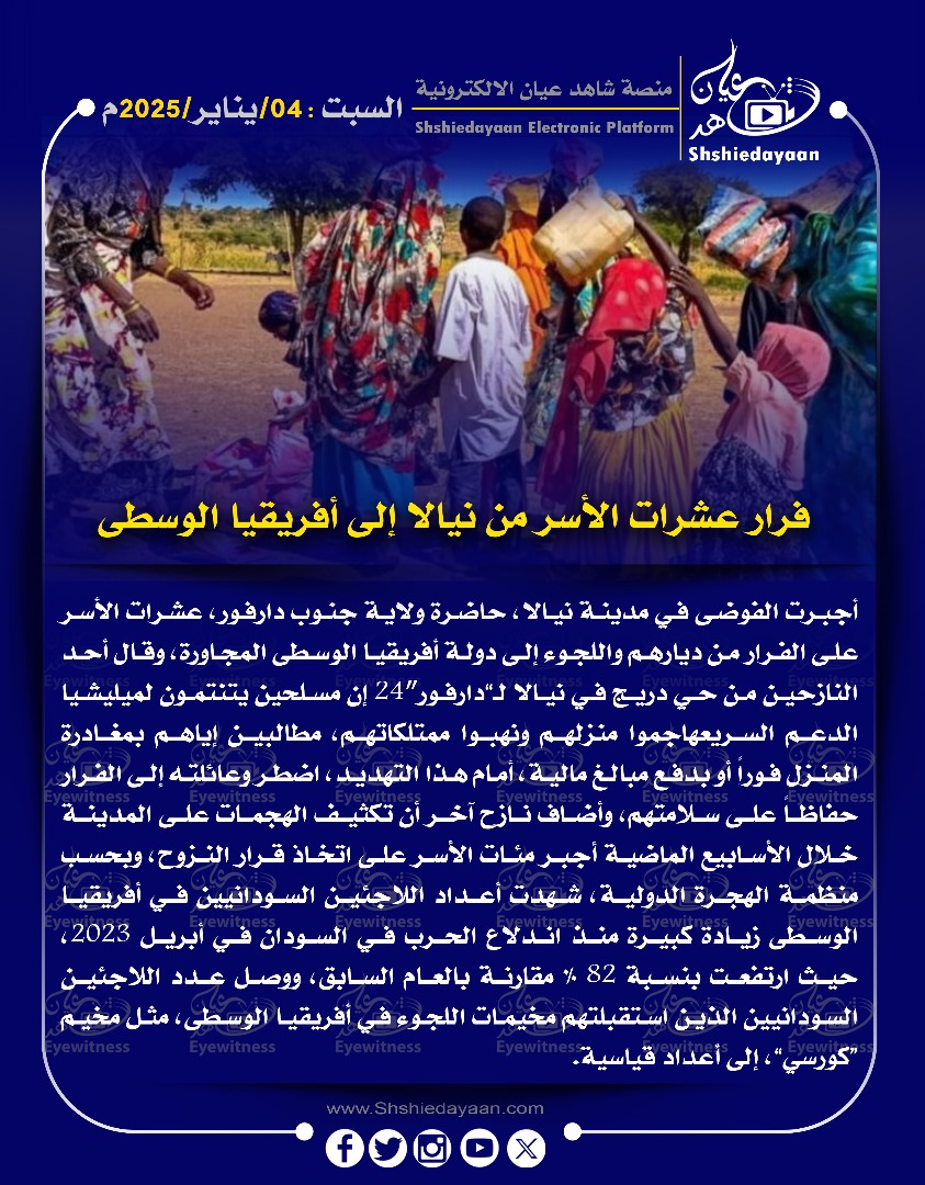 خبر في صورة عاجل … الميليشيا بنيالا تقوم بتجميع مرتزقة وتحاول اخراجهم ليلاً شاهد عيان يناير 4, 2025 0 أقرأ المزيد ..