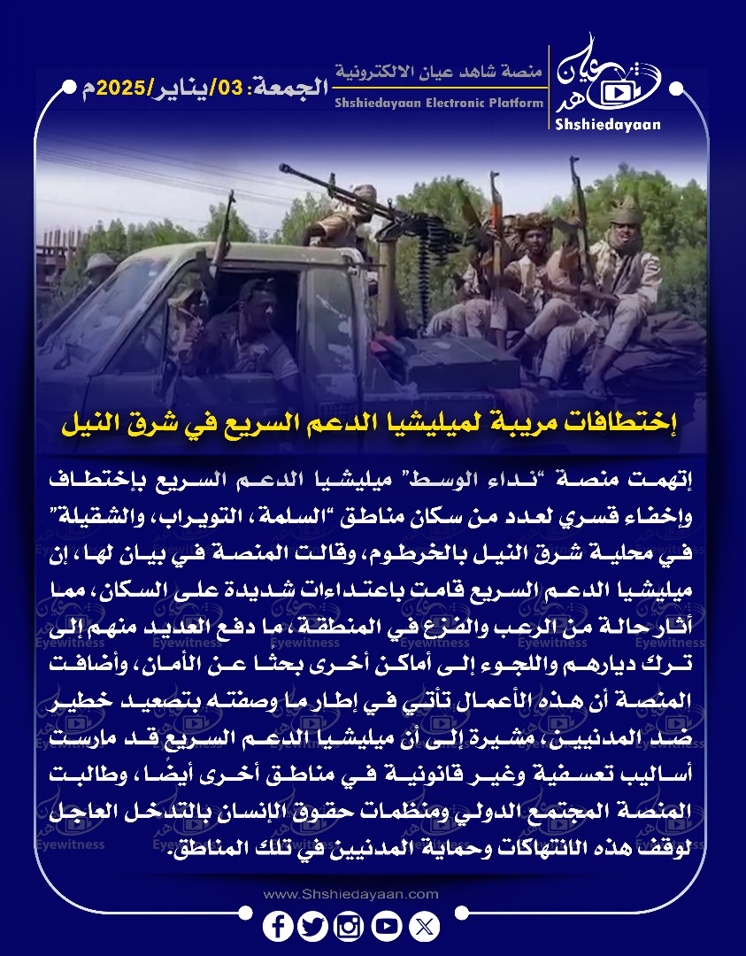 خبر في صورة إختطافات مريبة لميليشيا الدعم السريع في شرق النيل شاهد عيان يناير 3, 2025 0 أقرأ المزيد ..