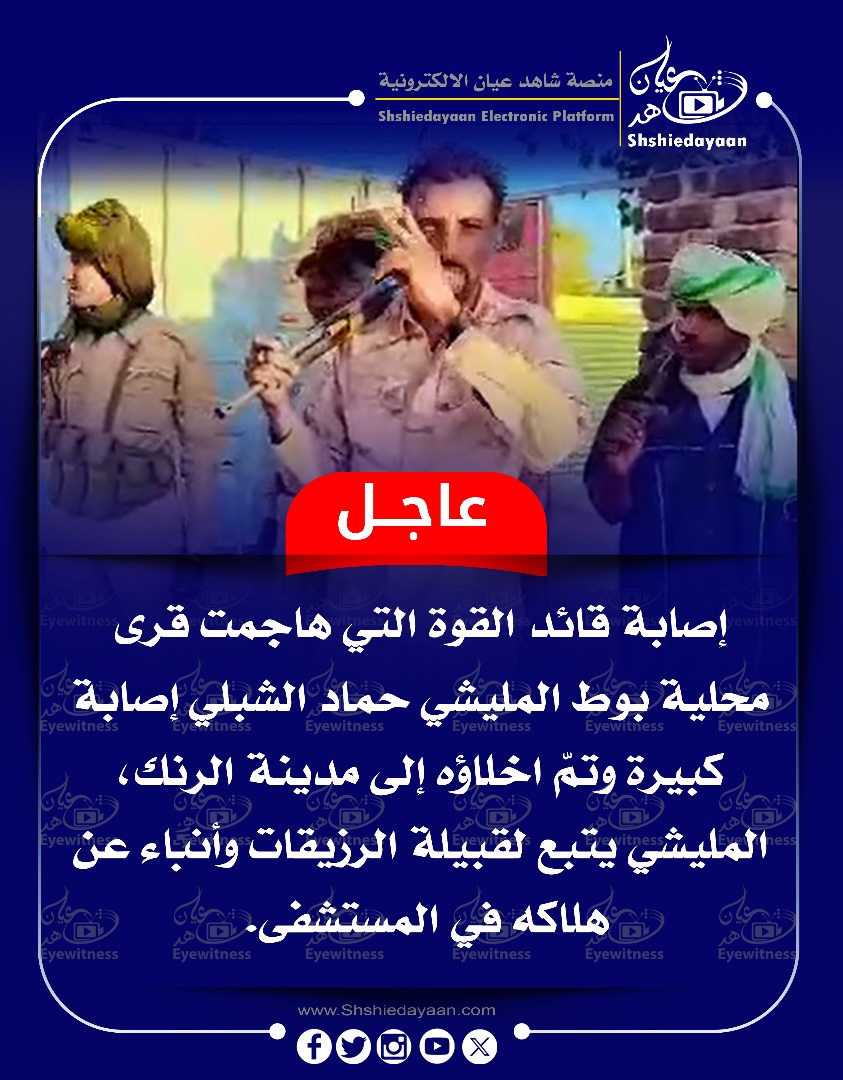 خبر في صورة عاجل … إصابة قائد القوة التي هاجمت قرى محلية بوط المليشي حماد الشبلي إصابة كبيره شاهد عيان يناير 3, 2025 0 أقرأ المزيد ..