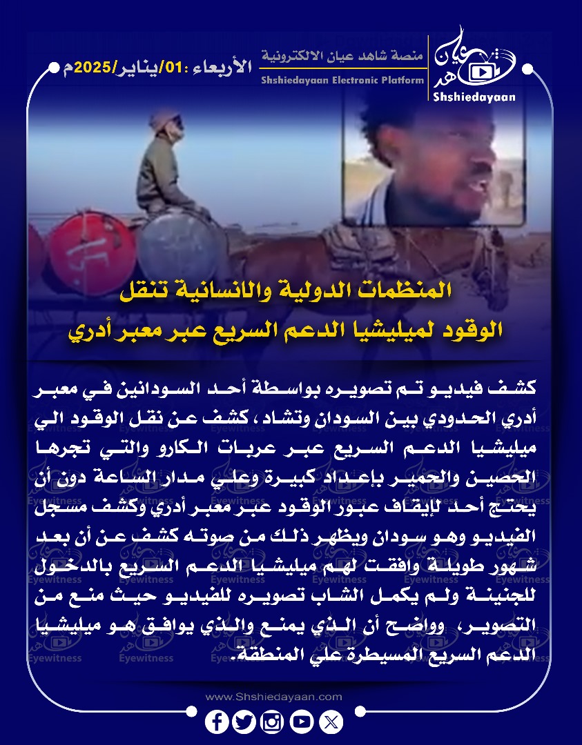 خبر في صورة المنظمات الدولية والانسانية تنقل الوقود لميليشيا الدعم السريع عبر معبر أدري شاهد عيان يناير 1, 2025 0 أقرأ المزيد ..