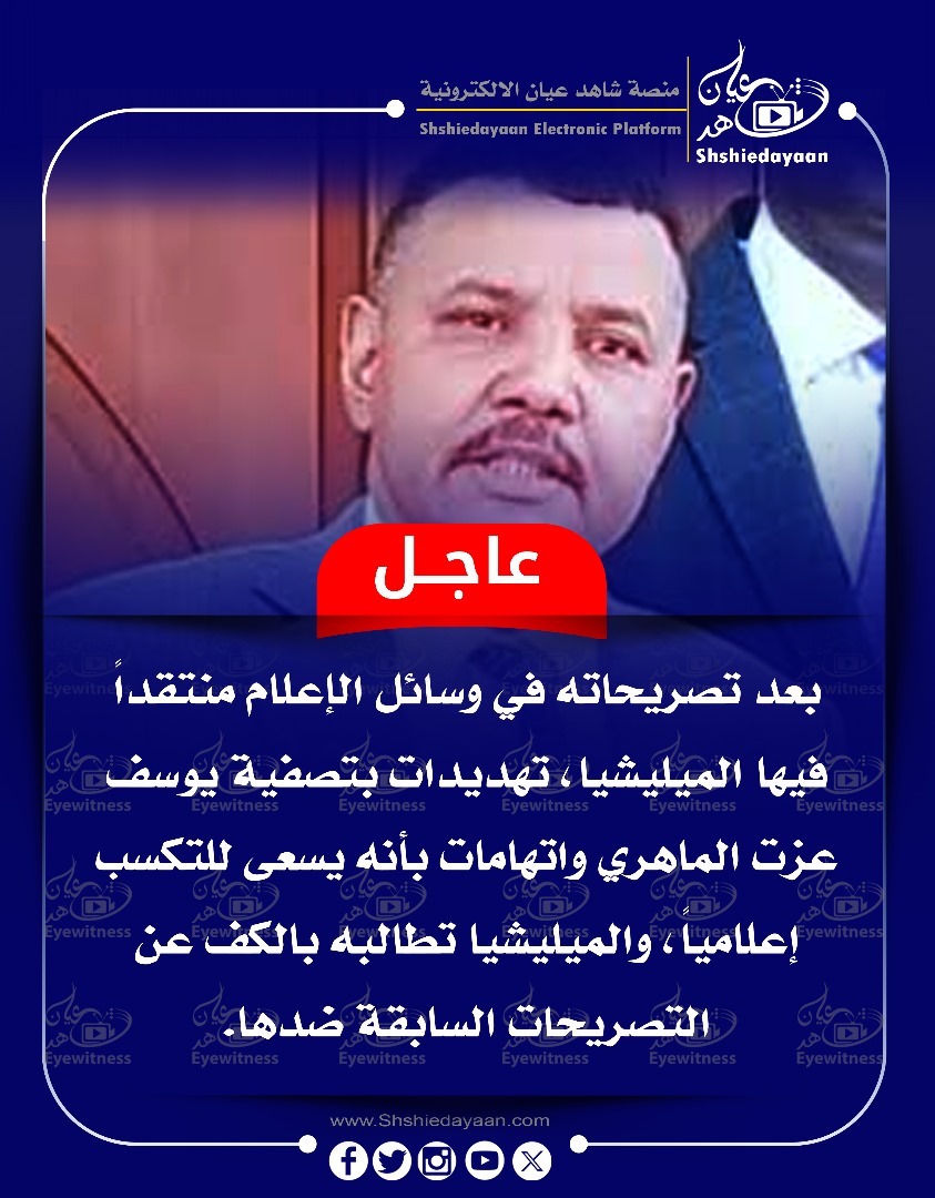 خبر في صورة الأخبار بعد تصريحاته في وسائل الإعلام منتقداً فيها الميليشيا ، تهديدات بتصفية يوسف عزت شاهد عيان ديسمبر 31, 2024 0 أقرأ المزيد ..