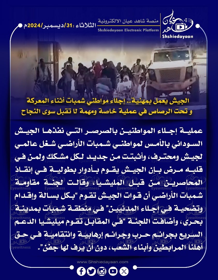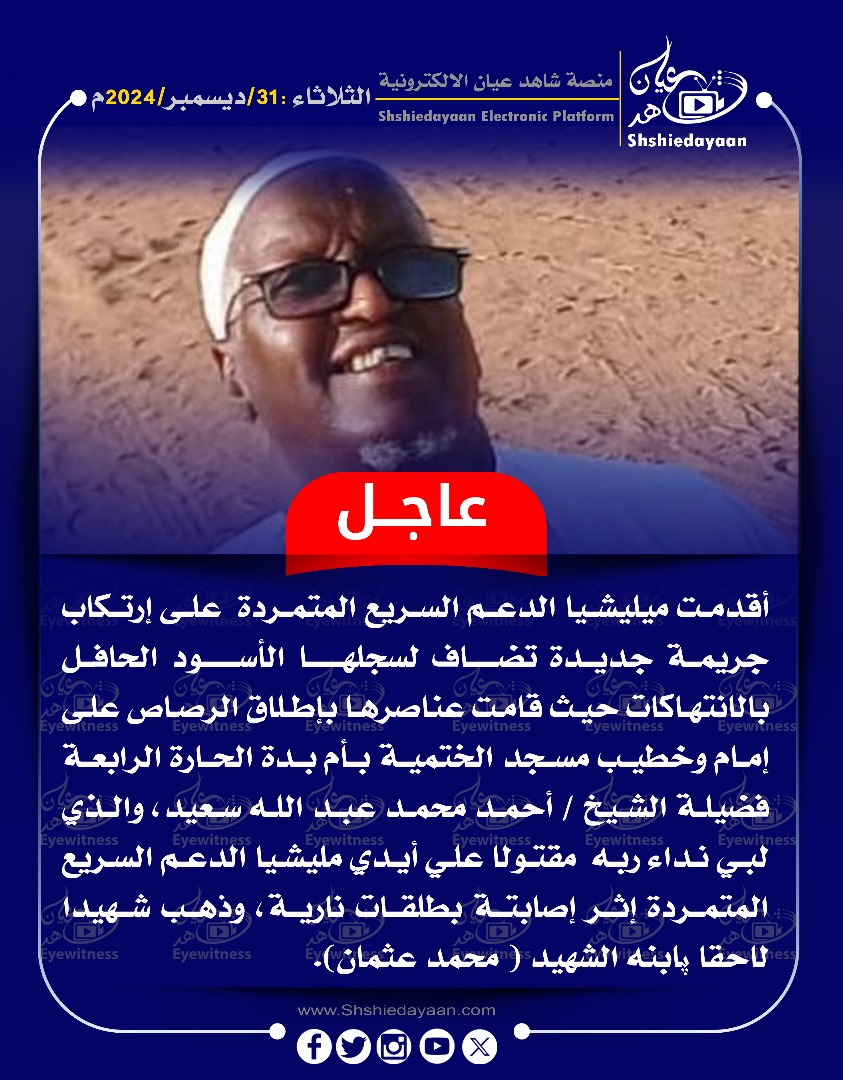 خبر في صورة عاجل……أقدمت ميليشيا الدعم السريع المتمردة على إرتكاب جريمة جديدة تضاف لسجلها الأسود الحافل بالانتهاكات شاهد عيان ديسمبر 31, 2024 0 أقرأ المزيد ..