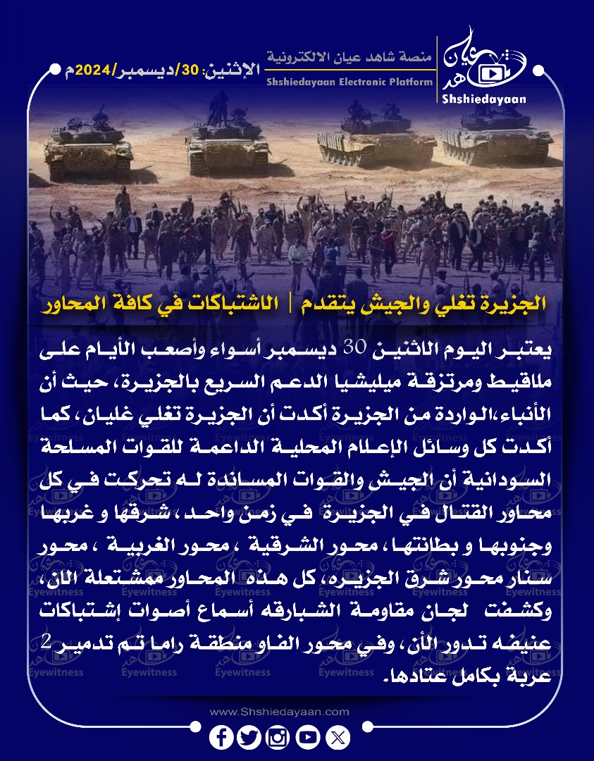 خبر في صورة الجزيرة تغلي والجيش يتقدم | الاشتباكات في كافة المحاور شاهد عيان ديسمبر 30, 2024 0 أقرأ المزيد ..