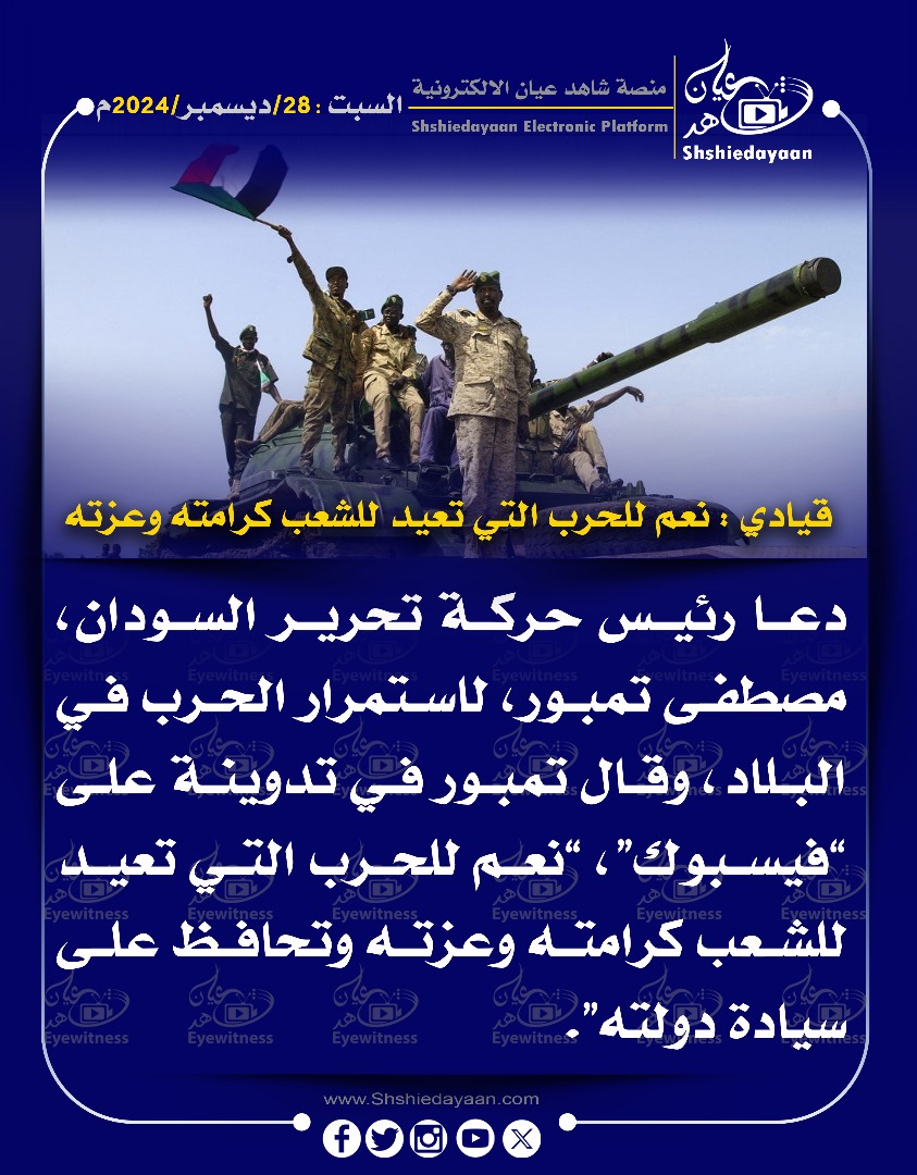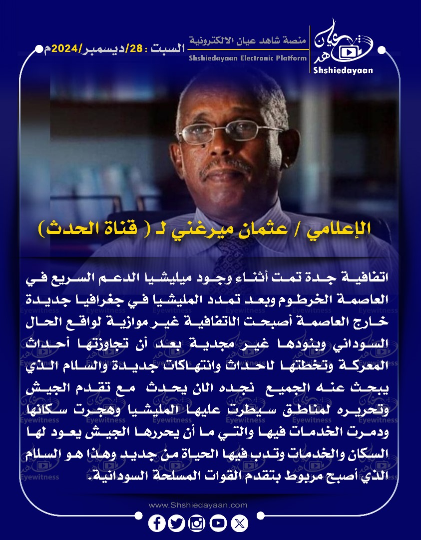 خبر في صورة الأخبار الإعلامي / عثمان ميرغني لـ ( قناة الحدث شاهد عيان ديسمبر 28, 2024 0 أقرأ المزيد ..