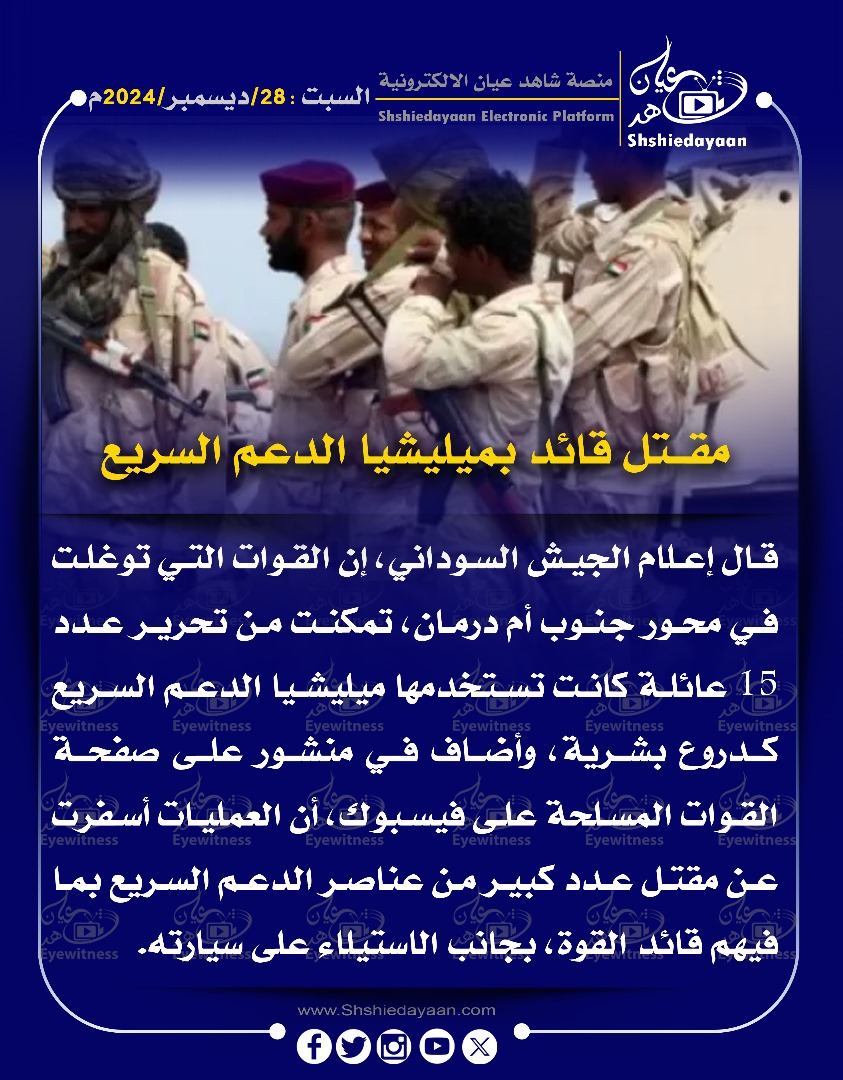 الأخبار المليشيا تبحث عن “علي رزق الله السافنا” في وديان دارفور خوفاً من تكرار عملية خروج النور القبة شاهد عيان أبريل 22, 2026
