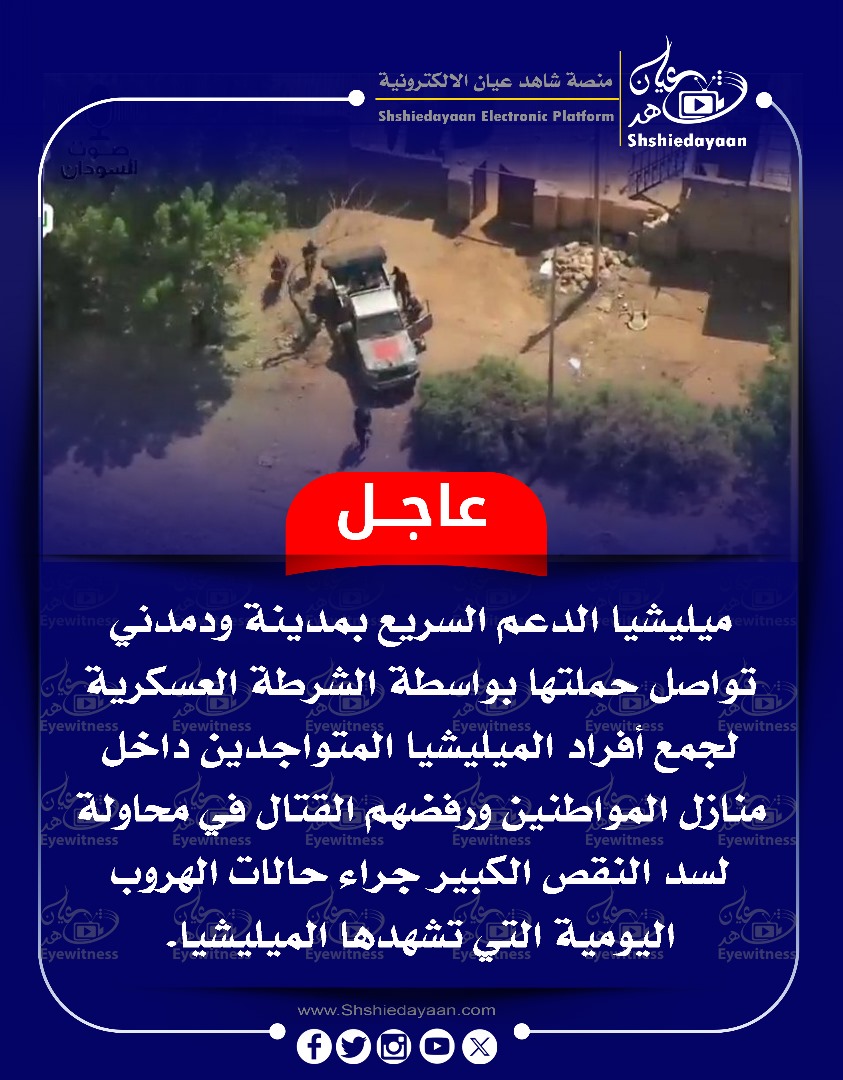 خبر في صورة عاجل …. ميليشيا الدعم السريع بمدينة ودمدني تواصل حملتها بواسطة الشرطة العسكرية الجمع أفراد الميليشيا المتواجدين داخل منازل المواطنين شاهد عيان ديسمبر 28, 2024 0 أقرأ المزيد ..