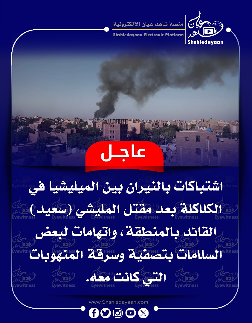 خبر في صورة عاجل … اشتباكات بالنيران بين الميليشيا في الكلاكلة بعد مقتل المليشي (سعيد ) القائد بالمنطقة شاهد عيان ديسمبر 28, 2024 0 أقرأ المزيد ..