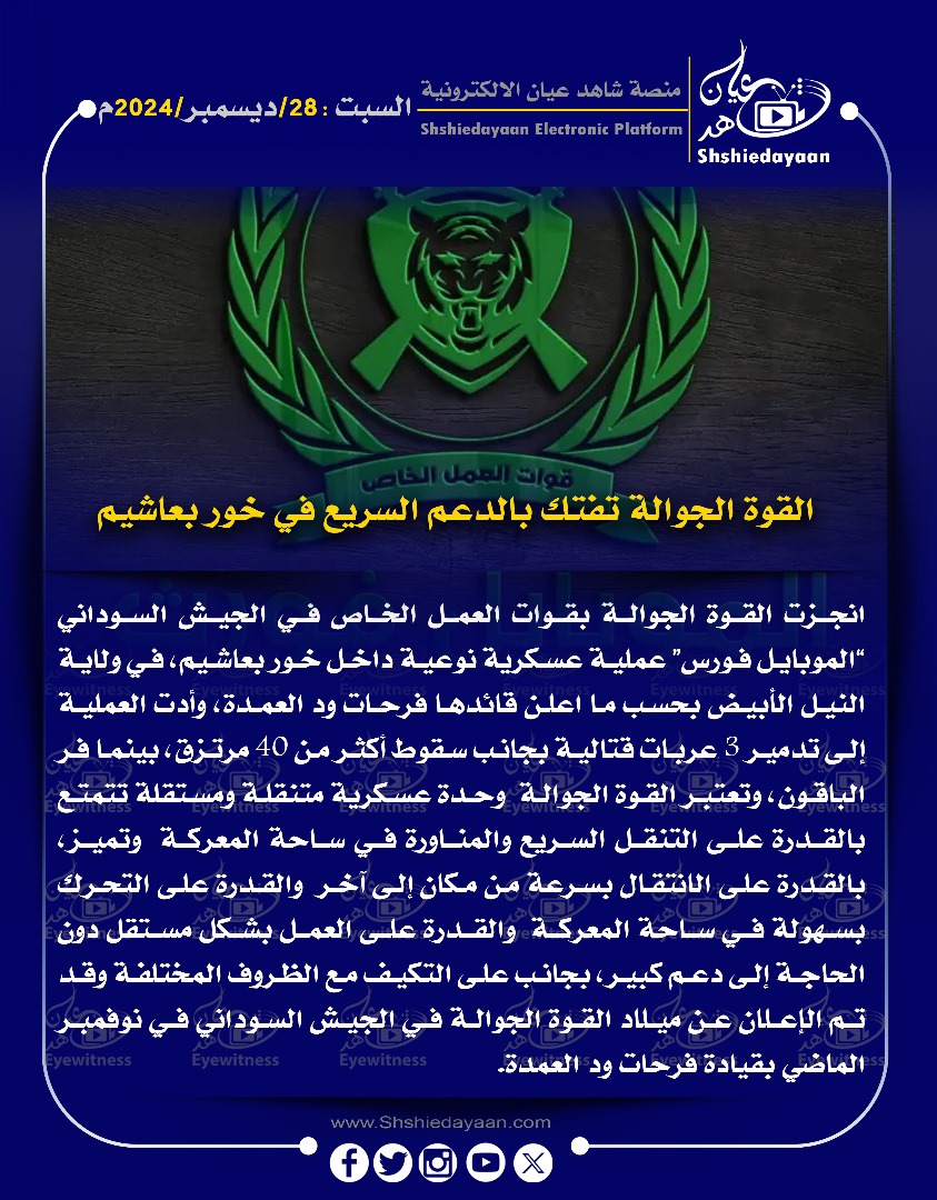 خبر في صورة القوة الجوالة تفتك بالدعم السريع في خور بعاشيم شاهد عيان ديسمبر 28, 2024 0 أقرأ المزيد ..
