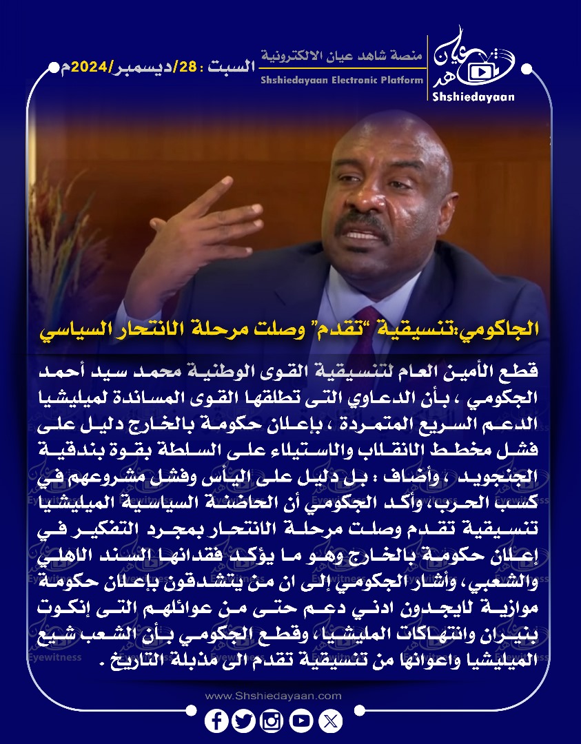 خبر في صورة الجاكومي التنسيقية تقدم وصلت مرحلة الانتحار السياسي شاهد عيان ديسمبر 28, 2024 0 أقرأ المزيد ..
