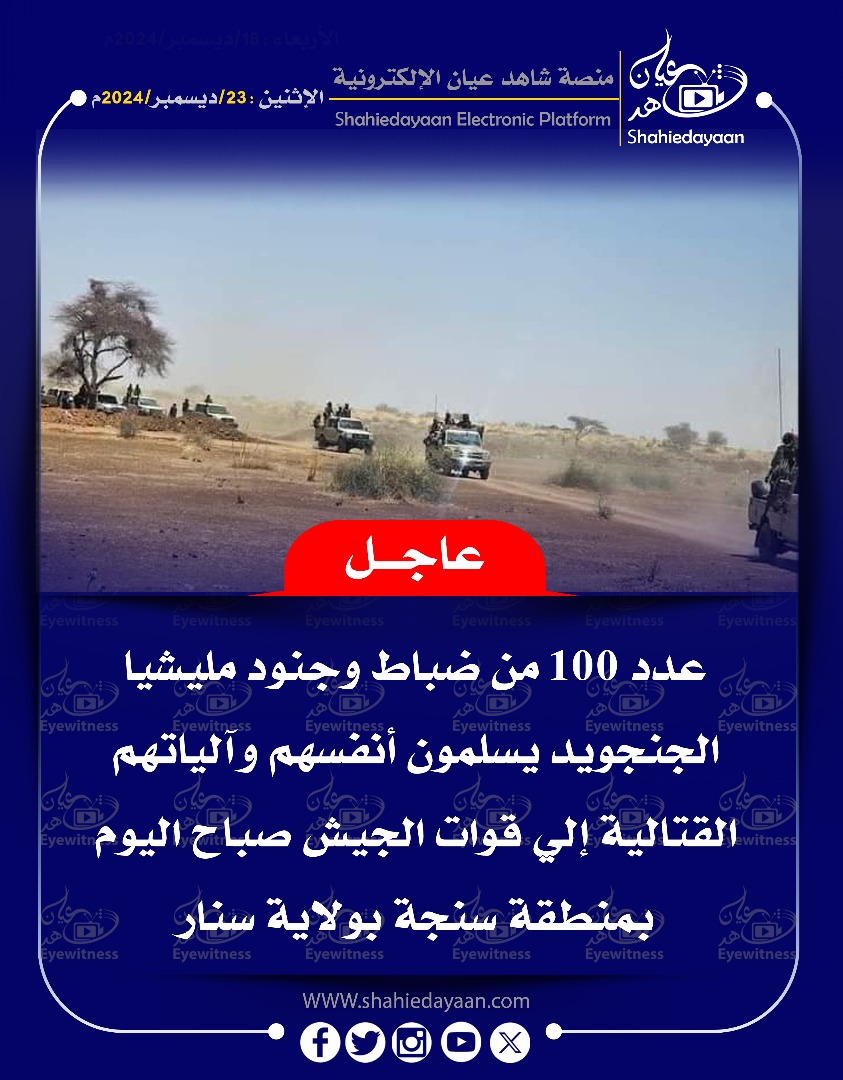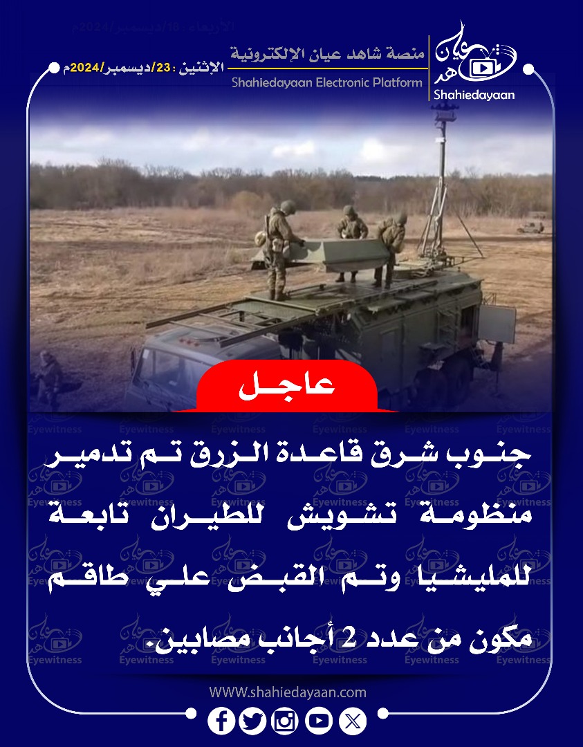 خبر في صورة الأخبار ✓[ بين الإشاعة و الحقيقة ] – إلتقاء – جيشي – الكدرو – سلاح الإشارة . شاهد عيان ديسمبر 24, 2024 0 ▪︎ مقطع فيديو وأخبار متداولة بإلتقاء قوات الكدرو وقوات سلاح الإشارة. ▪︎ الخبر غير صحيح والفيديو المتداول قديم وتم العبث… أقرأ المزيد ..
