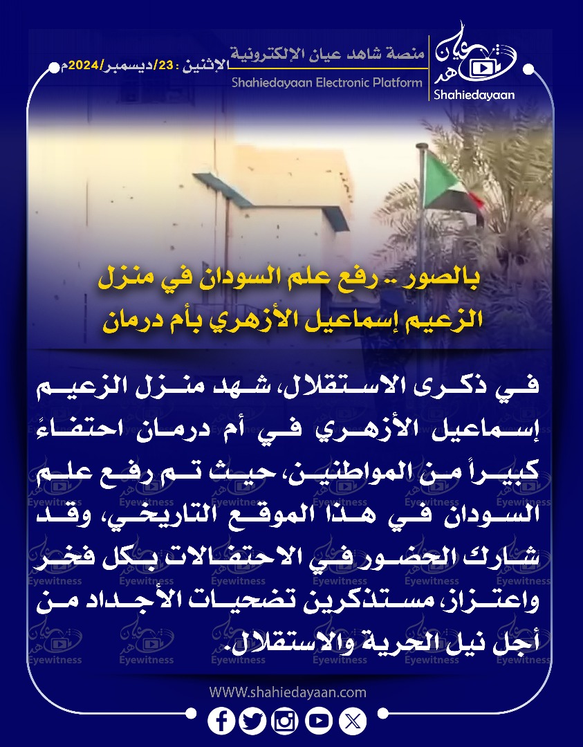 خبر في صورة بالصور – رفع علم السودان في منزل الزعيم إسماعيل الأزهري بأم درمان شاهد عيان ديسمبر 23, 2024 0 أقرأ المزيد ..