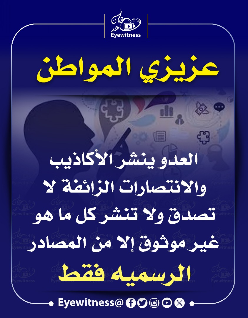 خبر في صورة الأخبار عزيزي المواطن & العدو ينشر الأكاذيب والانتصارات الزائفة لا تصدق ولا تنشر كل ما هو غير موثوق شاهد عيان ديسمبر 24, 2024 0 أقرأ المزيد ..
