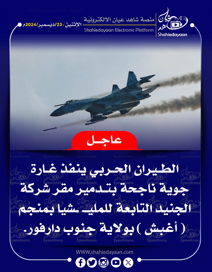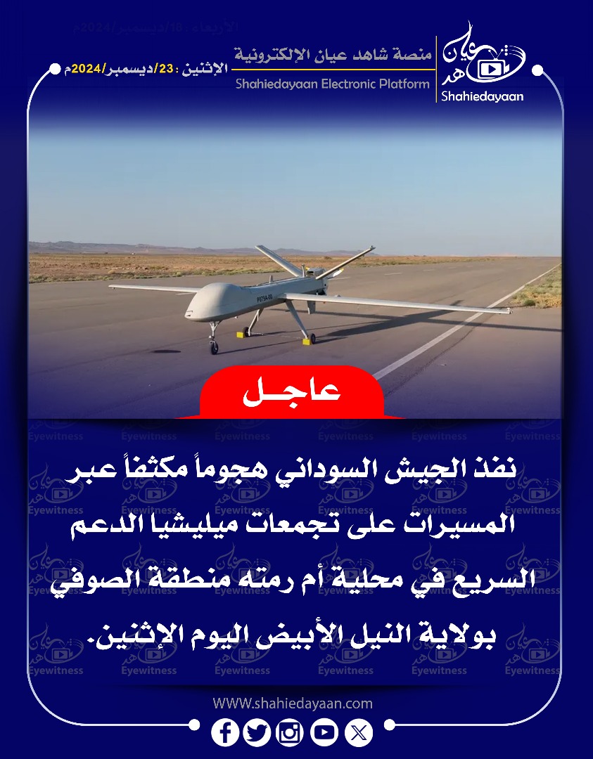 خبر في صورة عاجل….نفذ الجيش السوداني هجوماً مكثفاً عبر المسيرات على تجمعات ميليشيا الدعم شاهد عيان ديسمبر 23, 2024 0 أقرأ المزيد ..