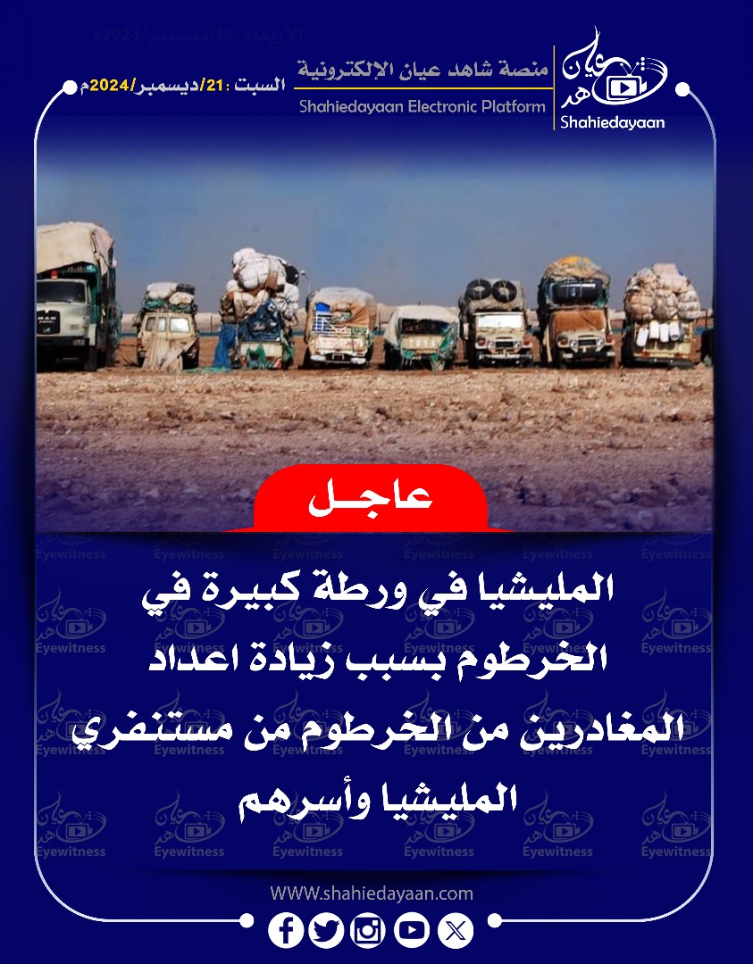 خبر في صورة الأخبار المليشيا في ورطة كبيرة في الخرطوم بسبب زيادة اعداد المغادرين من الخرطوم شاهد عيان ديسمبر 21, 2024 0 أقرأ المزيد ..