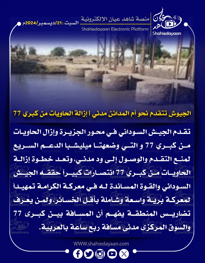 خبر في صورة الأخبار الجيوش تتقدم نحو أم المدائن مدني | إزالة الحاويات من كبري 77 شاهد عيان ديسمبر 21, 2024 0 أقرأ المزيد ..