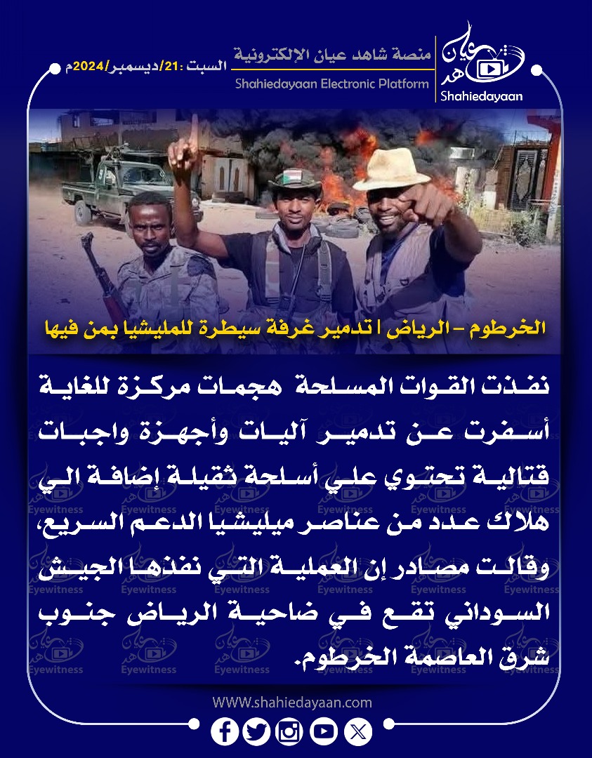 الأخبار خبر في صورة الخرطوم – الرياض | تدمير غرفة سيطرة للمليشيا بمن فيها شاهد عيان ديسمبر 21, 2024 0 أقرأ المزيد ..