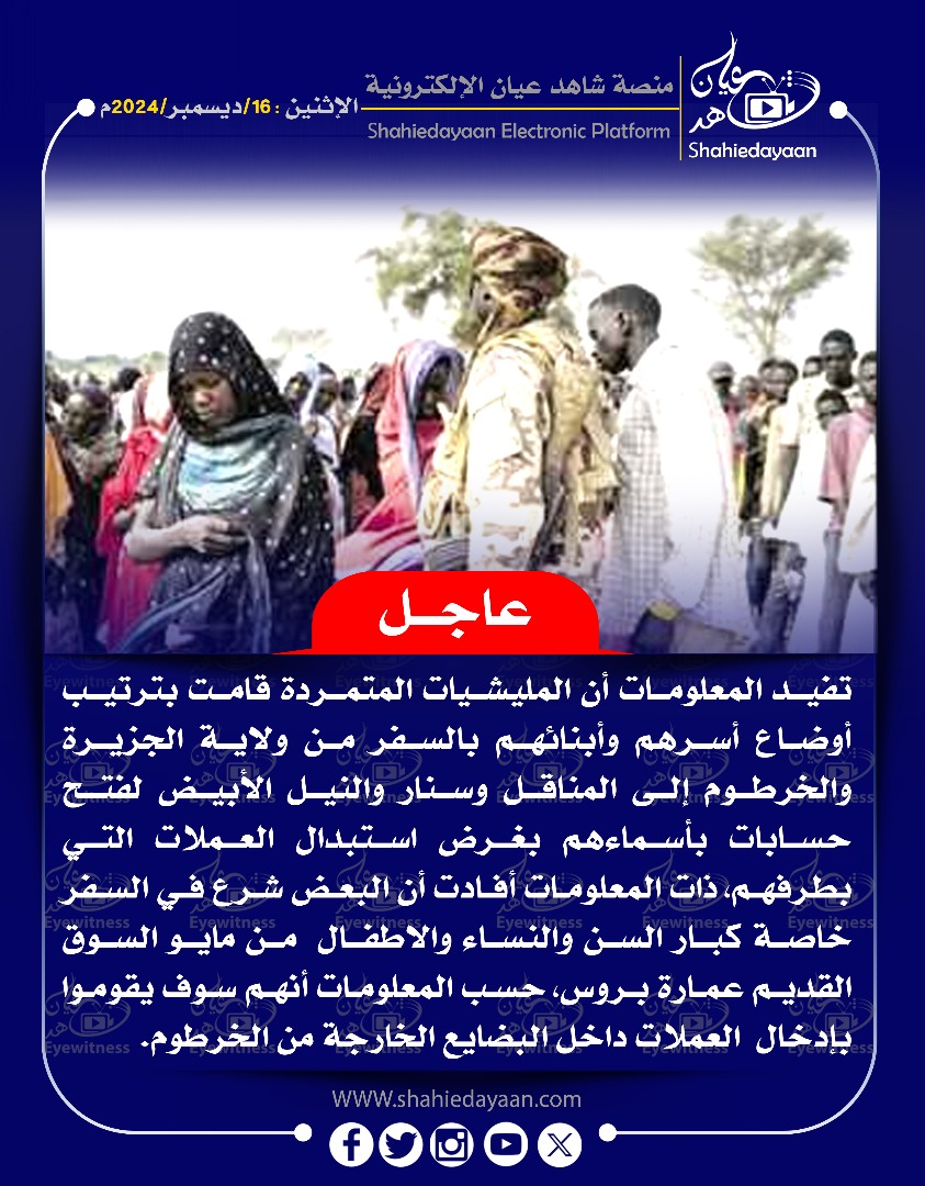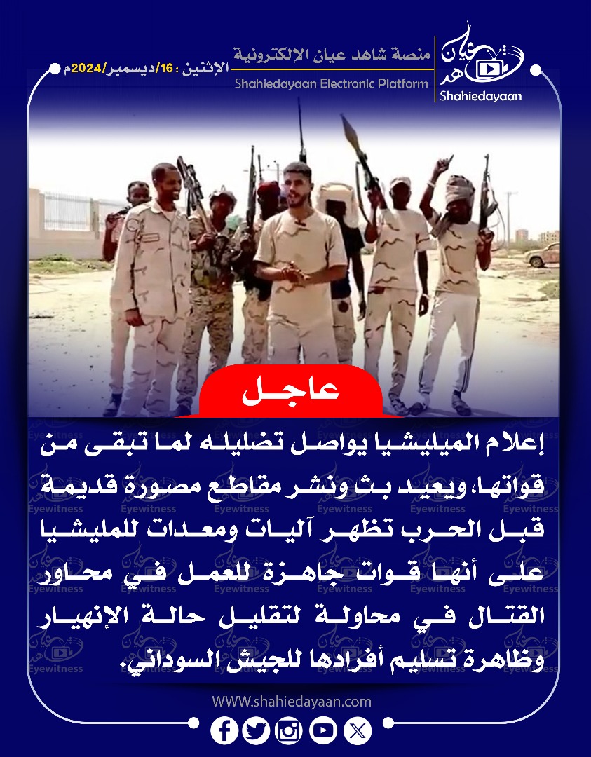 الأخبار خبر في صورة عاجل….. قادة ميليشيا الدعم السريع يطالبون بظهور الهالك حميدتي في وسائل الإعلام شاهد عيان ديسمبر 16, 2024 0 أقرأ المزيد ..