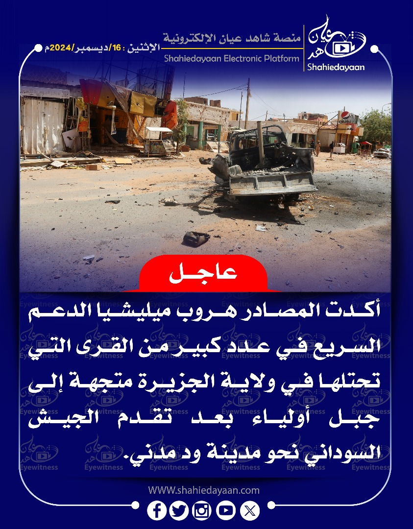 الأخبار خبر في صورة أكدت المصادر هروب ميليشيا الدعم السريع في عدد كبير من القرى شاهد عيان ديسمبر 16, 2024 0 أقرأ المزيد ..
