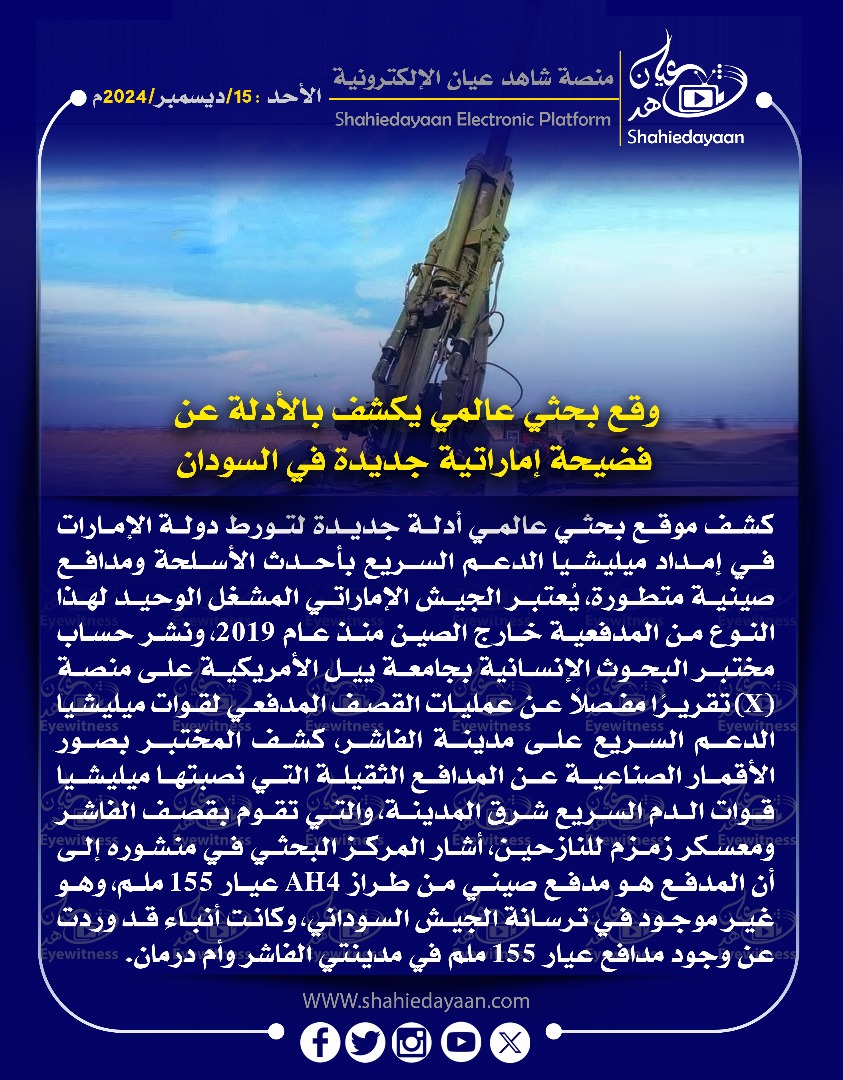 خبر في صورة وقع بحثي عالمي يكشف بالأدلة عن فضيحة إماراتية جديدة في السودان شاهد عيان ديسمبر 15, 2024 0 أقرأ المزيد ..