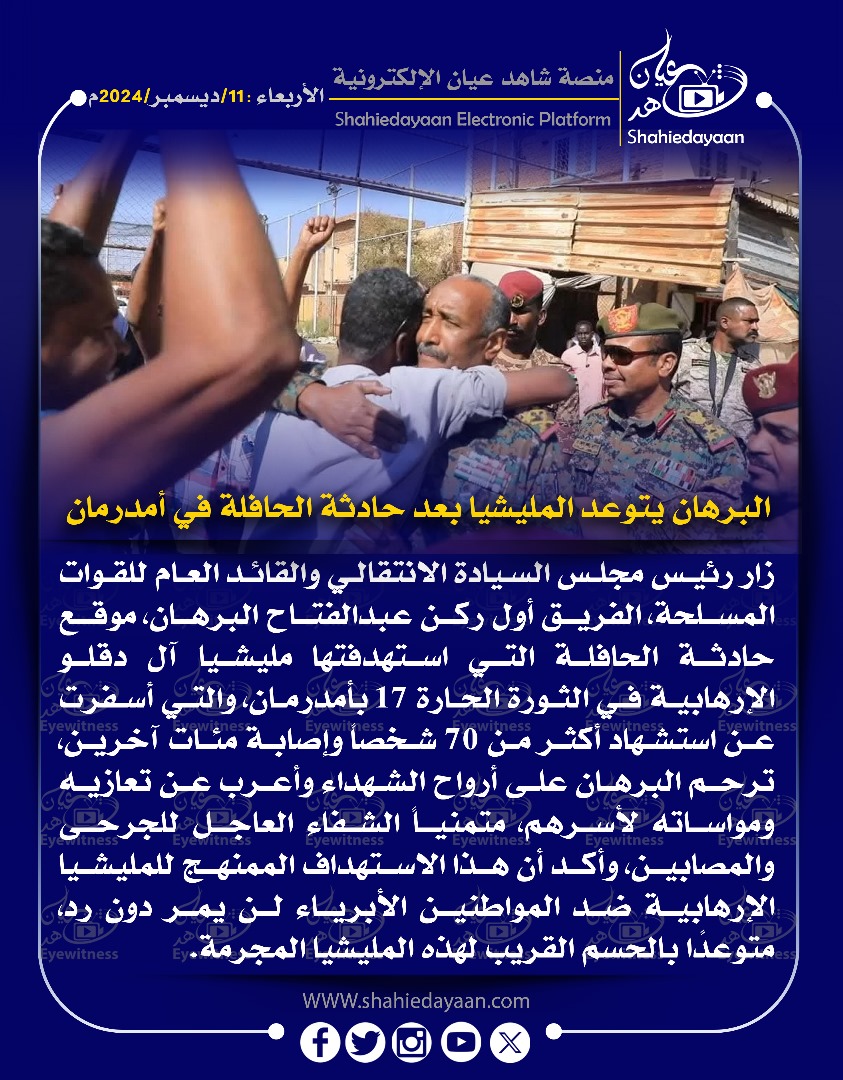 خبر في صورة البرهان يتوعد المليشيا بعد حادثة الحافلة في أمدرمان شاهد عيان ديسمبر 11, 2024 0 أقرأ المزيد ..
