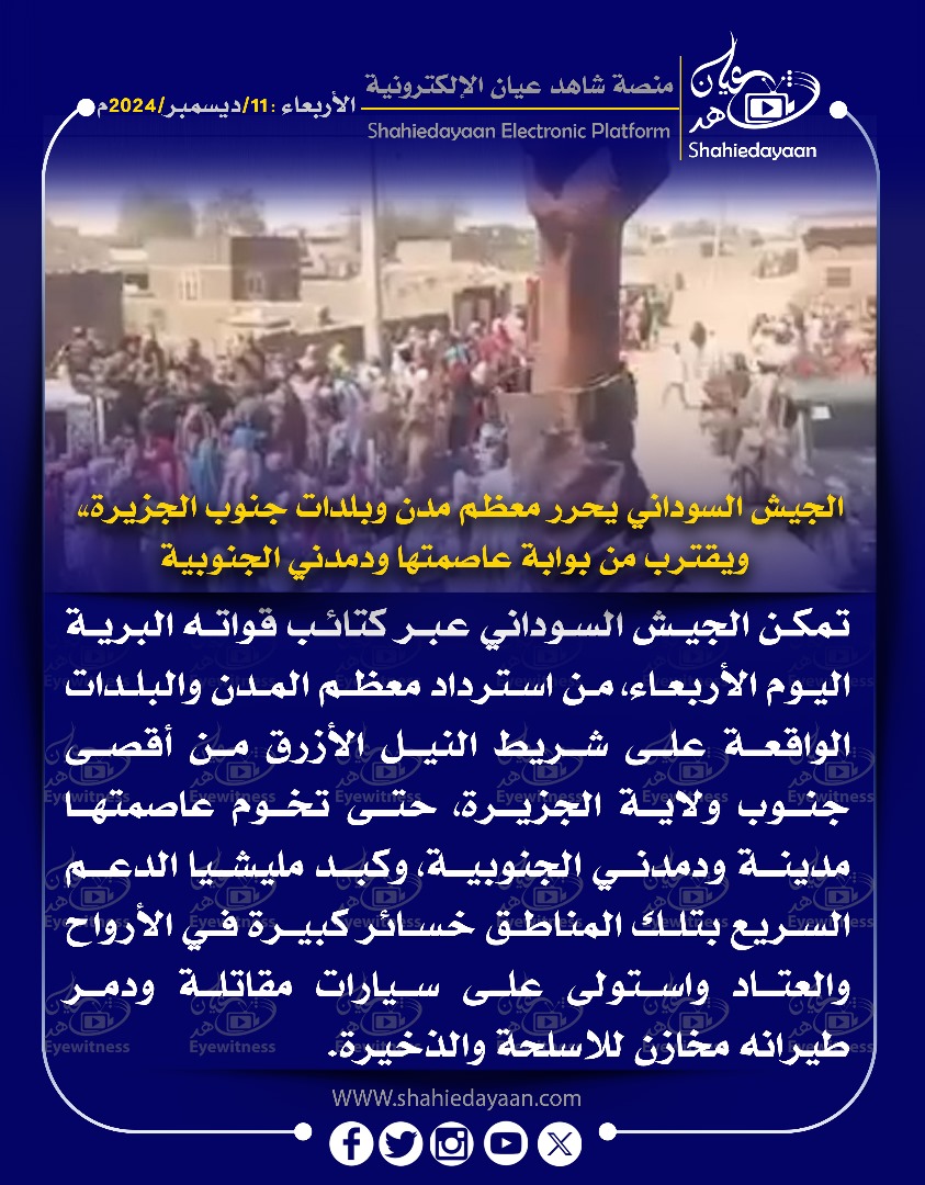 خبر في صورة الجيش السوداني يحرر معظم مدن وبلدات جنوب الجزيرة ويقترب من بوابة عاصمتها ودمدني الجنوبية شاهد عيان ديسمبر 11, 2024 0 أقرأ المزيد ..