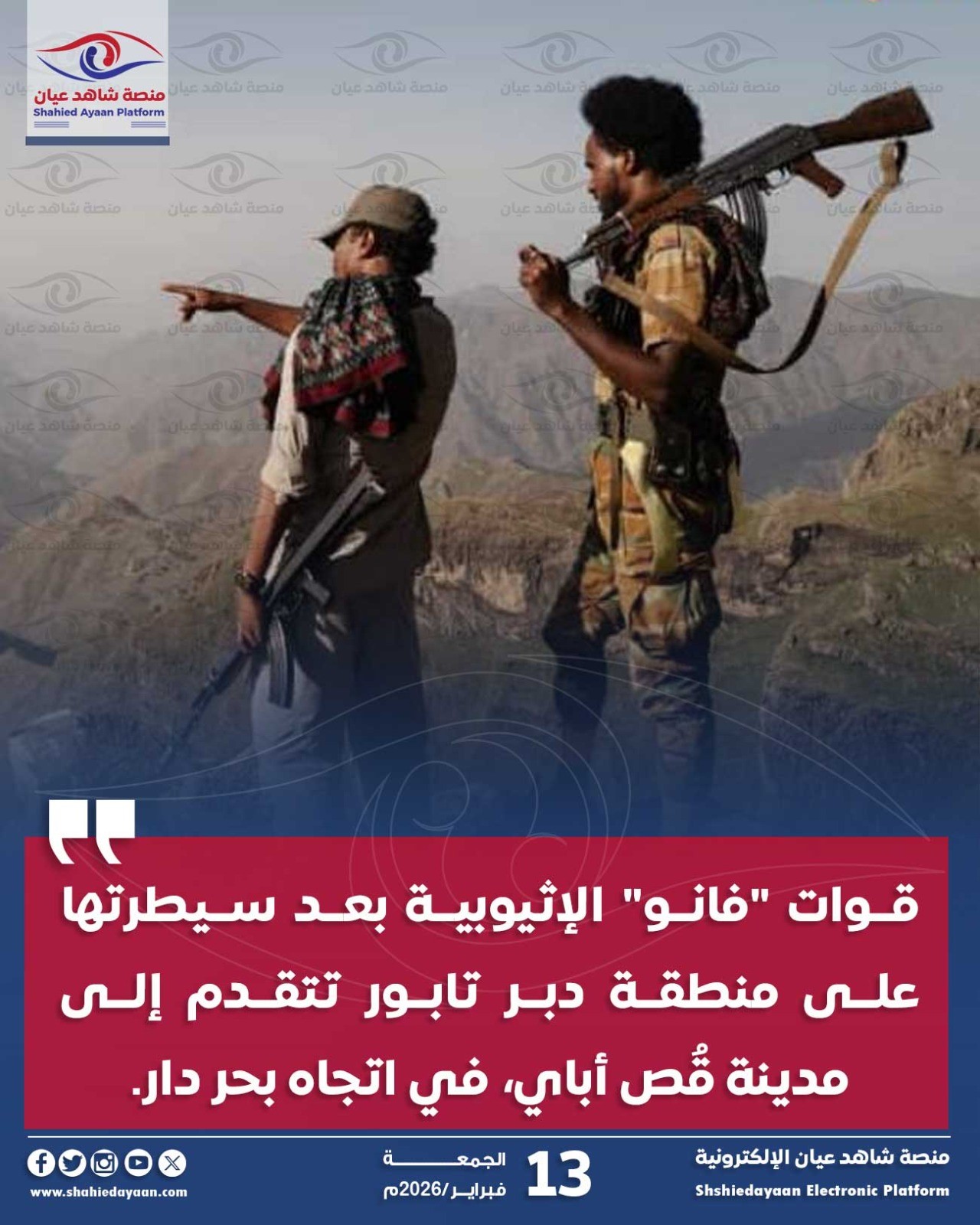 رصد | شاهد عيان قوات “فانو” الإثيوبية بعد سيطرتها على منطقة دبر تابور تتقدم إلى مدينة قُص أباي، في اتجاه…