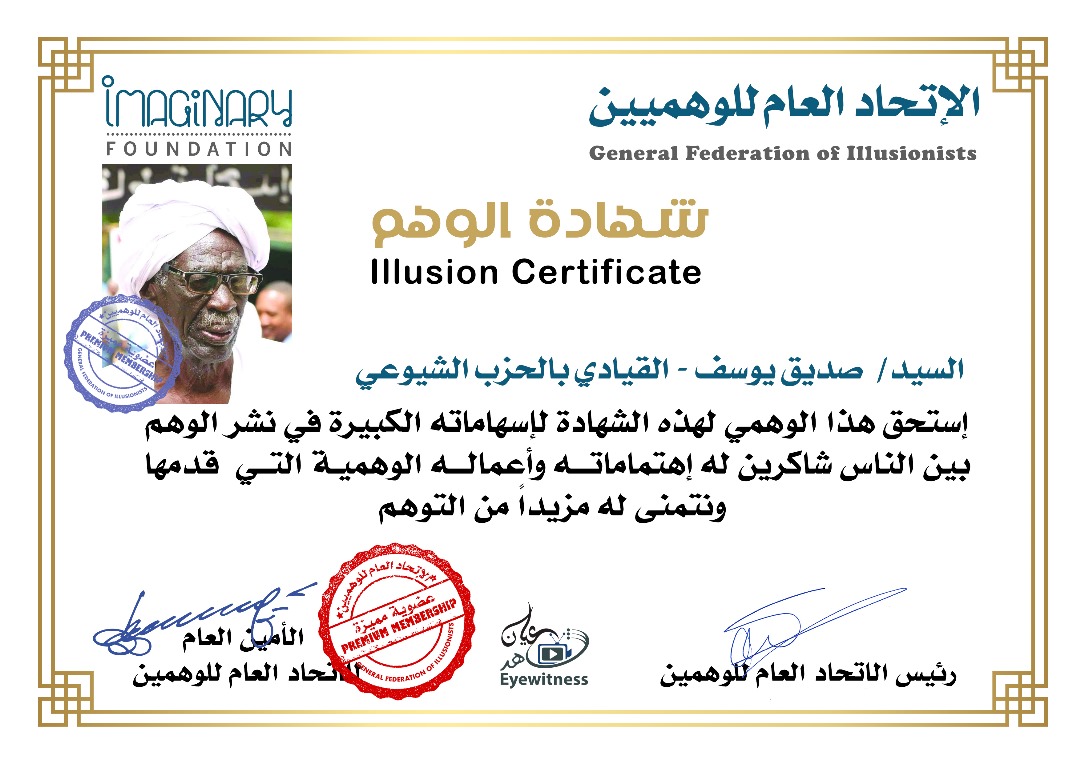 شهادة الوهمين الوهمي / محمد عصمت – رئيس الحزب الاتحادي الموحد شاهد عيان يونيو 8, 2025 0 أقرأ المزيد ..