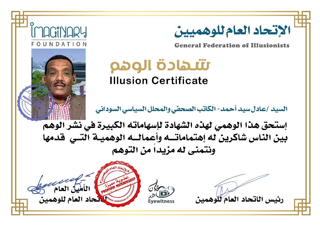 شهادة الوهمين الوهمي / د. عبد المنعم المهل استاذ الإعلام ومنتج البرامج بقناة النيل الازرق والمستشار الاعلامى لعدد من المؤسسات. شاهد عيان أبريل 13, 2025 0 أقرأ المزيد ..