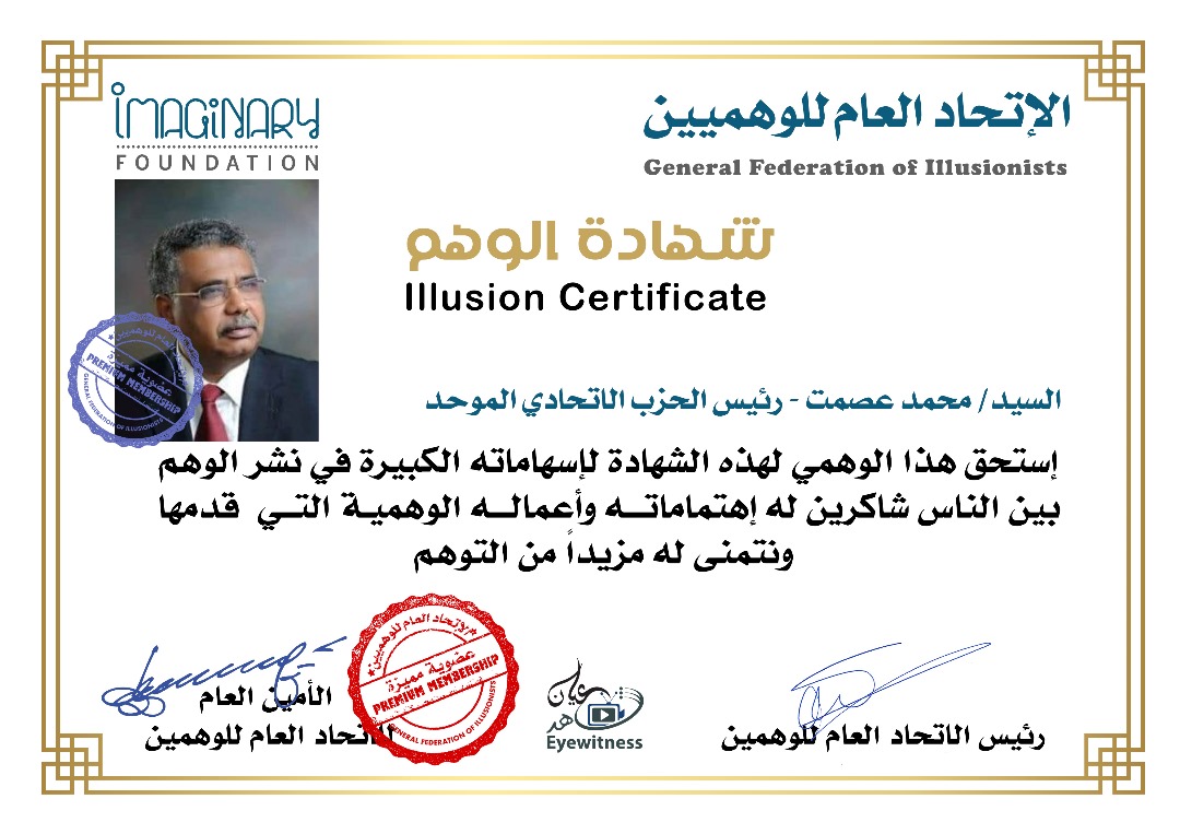 شهادة الوهمين الوهمي / محمد عصمت – رئيس الحزب الاتحادي الموحد شاهد عيان مارس 6, 2025 0 أقرأ المزيد ..