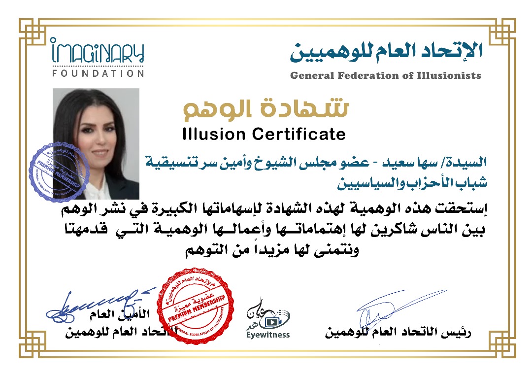 شهادة الوهمين الوهمية / سها سعيد – عضو مجلس الشيوخ وأمين سر تنسيقية شاهد عيان فبراير 12, 2025 0 أقرأ المزيد ..