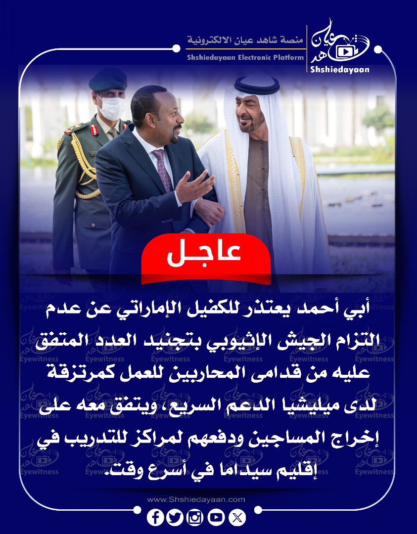 شهادة الوهمين عاجل…….أبي أحمد يعتذر للكفيل الإماراتي عن عدم التزام الجيش الإثيوبي بتجنيد العدد المتفق . عليه من قدامى المحاربين للعمل كمرتزقة لدى ميليشيا الدعم السريع شاهد عيان يناير 2, 2025 0 أقرأ المزيد ..