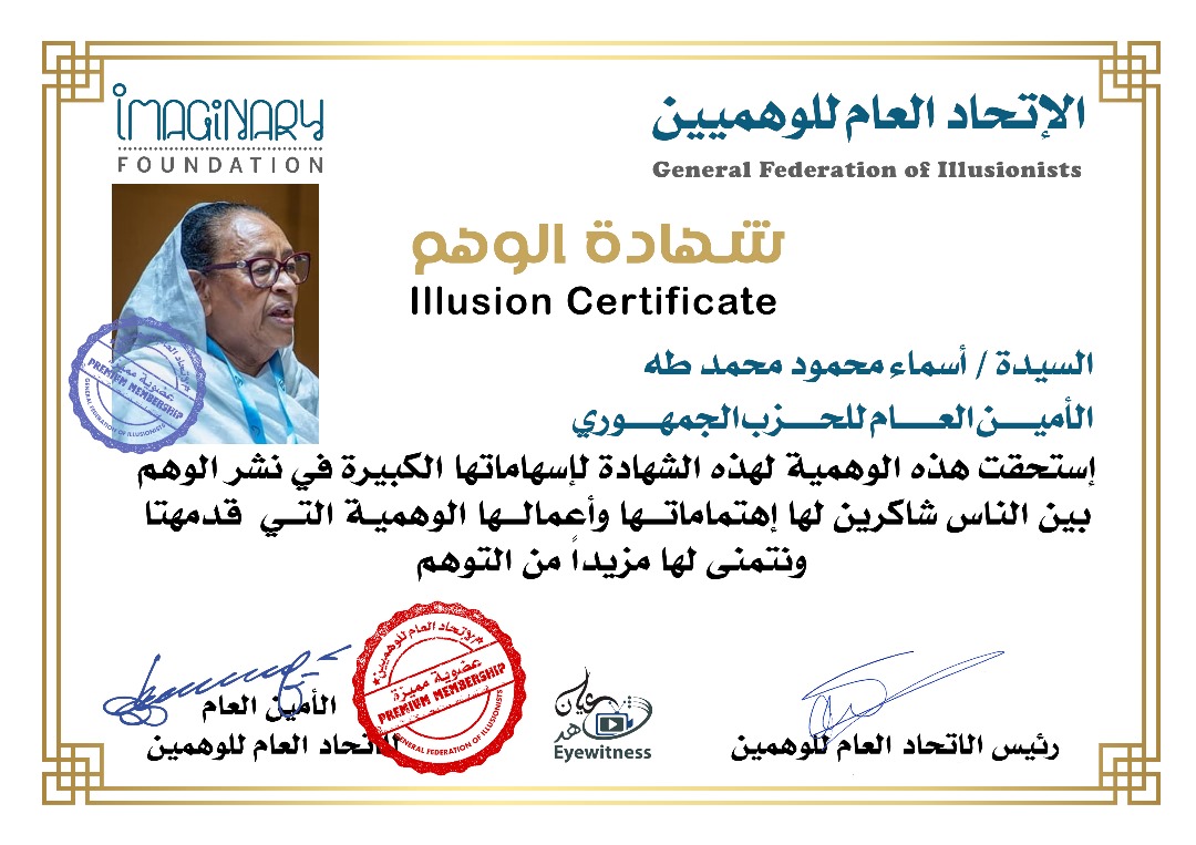 شهادة الوهمين الوهمي/ أسماء محمود محمد طه الأمين العام للحزب الجمهوري شاهد عيان أغسطس 16, 2025 0 أقرأ المزيد ..