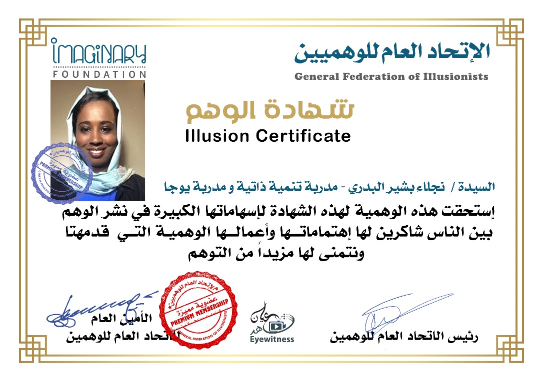شهادة الوهمين الوهمية / نجلاء بشير البدري – مدربة تنمية ذاتية ومدربة يوجا شاهد عيان أغسطس 13, 2025 0 أقرأ المزيد ..