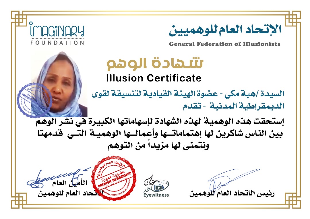 شهادة الوهمين الوهمية / هيفاء فاروق – عضو الحرية والتغيير والقيادية بتجمع المهنيين شاهد عيان يوليو 22, 2025 0 أقرأ المزيد ..
